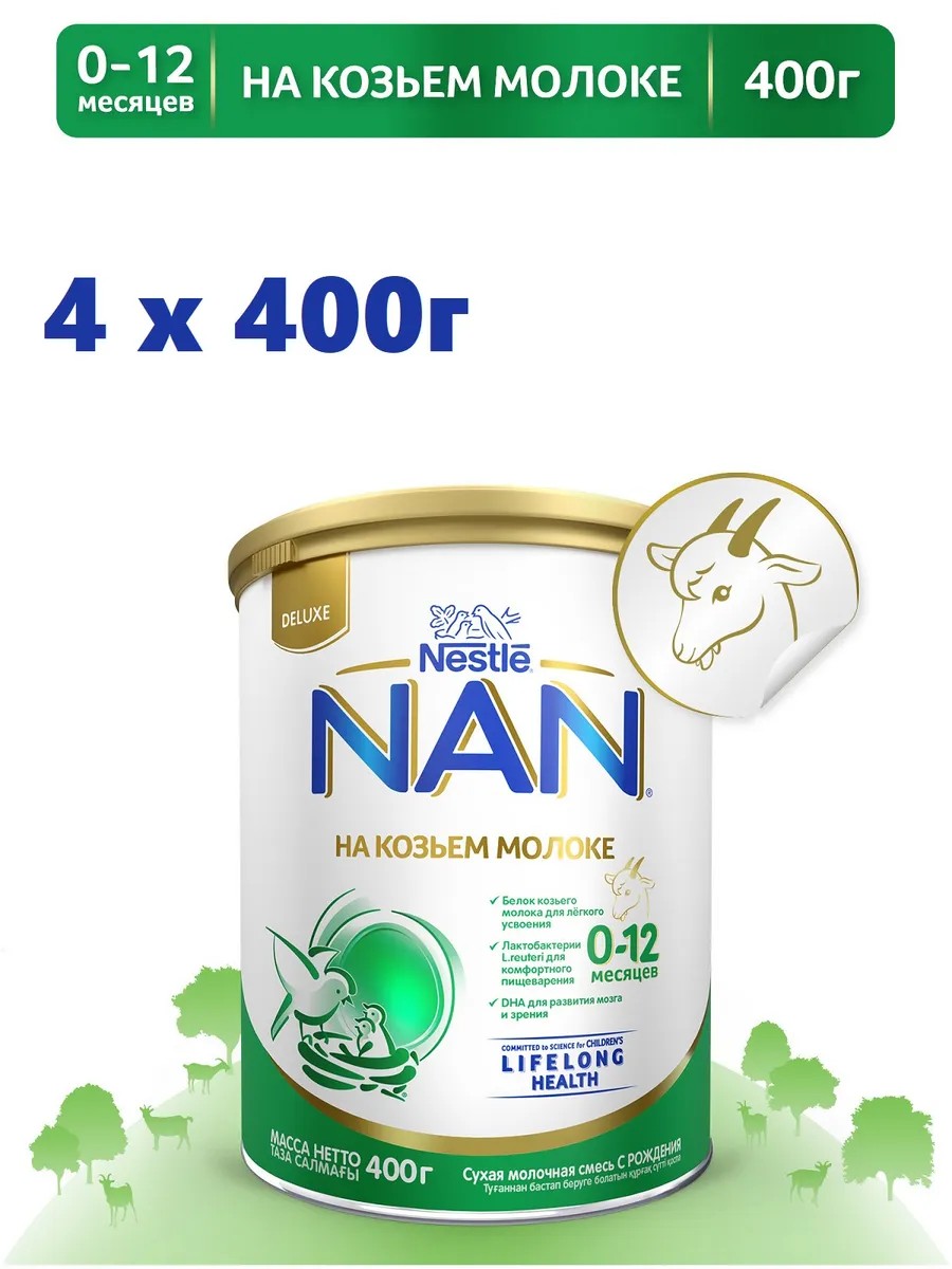 Смесь NAN GOAT Milk обеспечивает вашего ребенка всеми питательными веществами, необходимыми для гармоничного физического и умственного развития. Смесь NAN GOAT Milk содержит белок казьего молока, адаптированный специально для малышей для легкого усвоения и переваривания. Эксклюзивный пробиотик L. REUTERI, изначально выделенный из грудного молока, поддерживает здоровую микрофлору кишечника и способствует предупреждению колик. DHA — особая жирная кислота, содержащаяся в грудном молоке, способствует полноценному развитию мозга и зрения.
