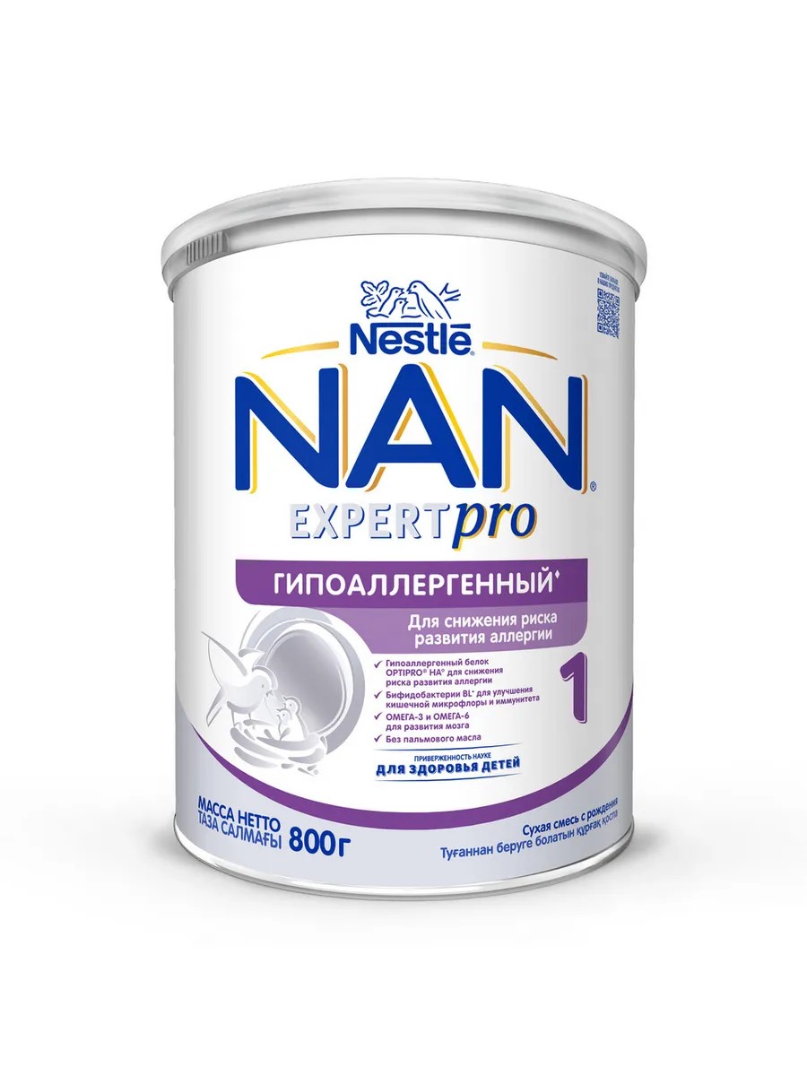 NAN Гипоаллергенный 1 OPTIPRO HA – гипоаллергенная смесь, предназначенная для кормления здоровых детей с рождения в случаях, когда грудное вскармливание невозможно. Она обеспечивает Вашего ребенка всеми нутриентами, необходимыми для его гармоничного физического и умственного развития. Клинически доказано, что специально разработанная смесь NAN Гипоаллергенный 1 OPTIPRO HA уменьшает риск развития аллергии, в частности атопического дерматита, в первые решающие годы жизни. Однако ее не следует использовать без консультации врача, если Ваш малыш уже имеет аллергию на белки коровьего молока. Введение другой смеси, а также коровьего молока, должно применяться под наблюдением медицинского работника.
