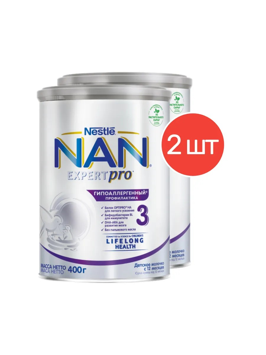НАН 3 ExpertPro, гипоаллергенный, с 12 месяцев, 400г 2 шт