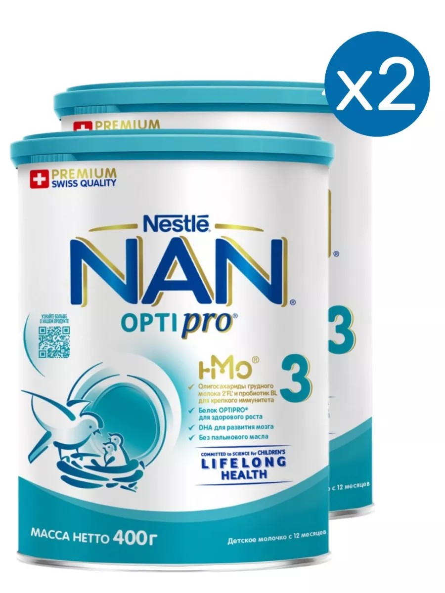 НАН 3 OPTIPRO,для роста,иммунитета и мозга, 400г 2 шт