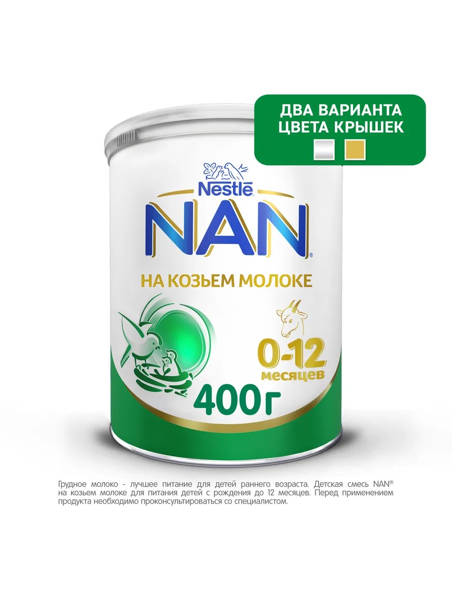 NAN with goat's milk. Instant-dissolving dry adapted milk formula based on goat's milk, from 0 to 12 months, 400g. NAN GOAT Milk is a milk formula made from high-quality goat's milk. The formula is intended for feeding healthy children from birth in cases where breastfeeding is not possible. NAN GOAT Milk provides your child with all the nutrients necessary for harmonious physical and mental development. NAN GOAT Milk contains: GOAT'S MILK PROTEIN, specially adapted for babies for easy absorption and digestion.