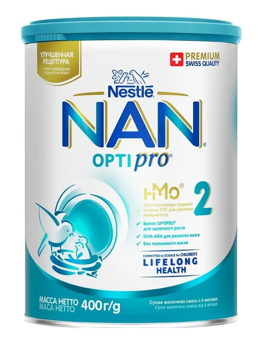 NAN OPTIPRO 2 - молочная смесь для детского питания, созданная на основе данных, полученных благодаря исследованиям Nestle в области обеспечения здоровья детей на протяжении всей жизни. Смесь содержит оптимальное сочетание компонентов: белок OPTIPRO, олигосахарид 2 FL и пробиотик BL, которые поддержат здоровое развитие вашего ребенка в период введения прикорма, помогая вам заложить крепкую основу для будущего здоровья Вашего ребенка. OPTIPRO - эксклюзивный белковый комплекс, научно разработан для поддержания здорового роста и развития малыша на данном этапе. Олигосахарид 2 FL, олигосахарид структурно идентичный наиболее распространенному виду олигосахаридов грудного молока. Исследования показывают, что Олигосахариды 2 FL помогают поддерживать иммунитет.BL PROBIOTIC: натуральный пробиотик, который помогает поддерживать здоровую иммунную систему малыша.