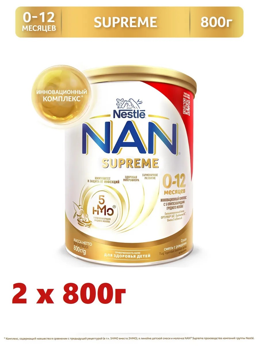 Детская смесь NAN SUPREME с инновационным комплексом с 5 олигосахаридами грудного молока разработана для детей в возрасте от 0 до 12 месяцев.