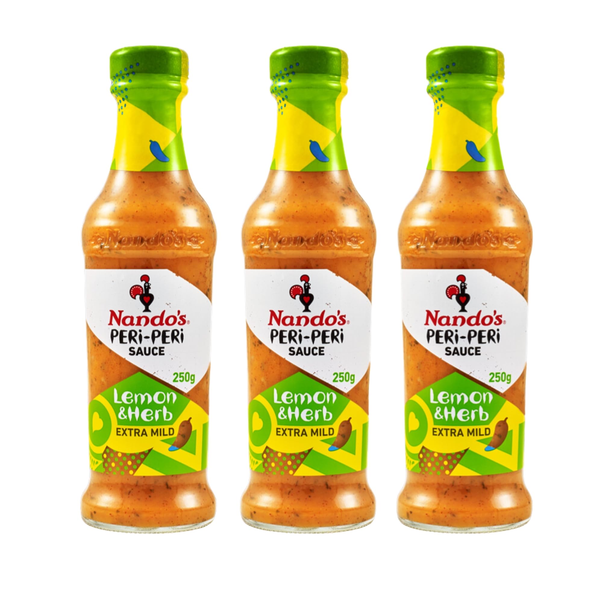 Sustainable Sourcing: Made with chilies grown by local farmers, this sauce supports communities while delivering authentic flavor, with no preservatives or artificial flavors. Versatile Use: Delicious with chicken, fish, rice, or vegetables. Pour, dip, marinate, or use as a topping on sandwiches, soups, or eggs. Diet-Friendly: This gluten-free hot sauce is Halal and Kosher certified, making it ideal for vegetarians and those who enjoy healthy cooking. Premium Ingredients: With sun-ripened lemons, fresh herbs, and a refined selection of spices, this sauce offers a naturally sophisticated flavor experience that will elevate your cooking. Refreshing Note: Discover the perfect harmony of tangy lemon and aromatic herbs—this PERi-PERi Lemon Herb Sauce brings an invigorating, summery freshness to your dishes.Approvisionnement durable : Fabriquée à partir de piments cultivés par des producteurs locaux, cette sauce soutient les communautés tout en offrant un goût authentique, sans conservateurs ni arômes artificiels. Utilisation multiple : Délicieuse avec du poulet, du poisson, du riz ou des légumes. À verser, tremper, mariner ou utiliser comme garniture sur des sandwichs, des soupes ou des œufs. Adaptée à tous les régimes : Sauce piquante sans gluten, certifiée Halal et Casher, idéale pour les végétariens et les amateurs de cuisine saine. Ingrédients de qualité : Avec des citrons mûris au soleil, des herbes fraîches et une sélection raffinée d'épices, cette sauce offre une expérience gustative naturelle et raffinée qui sublimera votre cuisine. Note rafraîchissante : Découvrez l'harmonie parfaite entre le citron acidulé et les herbes aromatiques – cette sauce Lemon Herb PERi-PERi apporte à vos plats une fraîcheur vivifiante et estivale.Nando's Sauce PERi-PERi Citron Herbes - Très Douce - Lot de 3 x 250g