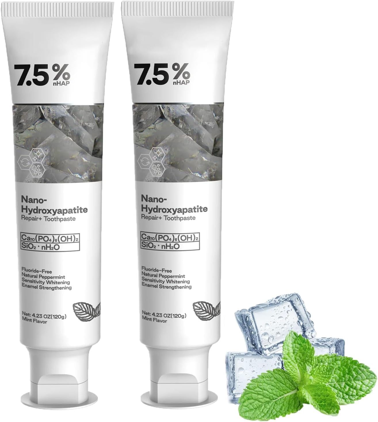 [Long-Lasting Fresh Breath] Improves the oral environment, keeps breath fresh for longer, and makes your smile more confident. [Daily Oral Care] Designed for everyday use, this toothpaste supports overall oral health, keeping your teeth strong and your mouth feeling fresh with regular brushing. [Fluoride-Free and Safe] Does not contain any harmful ingredients, safe and gentle, Enjoy a fluoride-free toothpaste that provides advanced enamel protection, ensuring safe. [Gentle for Sensitive Teeth] Our hydroxyapatite toothpaste provides a gentle yet thorough clean, perfect for sensitive teeth without causing discomfort or irritation. [Hydroxyapatite-Enriched Formula] Powered by hydroxyapatite, a naturally occurring mineral that effectively restores and strengthens tooth enamel, protecting your teeth from daily wear and tear.