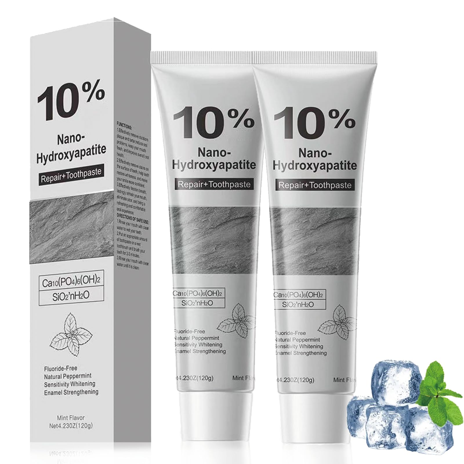 Optimized Daily Oral Care Designed for daily routines this nano hydroxyapatite toothpaste enhances oral health brush 3 minutes twice daily best results. Fluoride-Free Gentle Formula Our 10 nano hydroxyapatite toothpaste delivers non-abrasive cleaning fluoride-free safe for sensitive teeth daily use eliminating discomfort. Natural Mint for Fresh Breath The nano hydroxyapatite toothpaste improves tooth surface environment reducing bacterial growth while mint eliminates bad breath sources for lasting freshness. Advanced Nano-Hydroxyapatite Protection Infused with 10 nano hydroxyapatite, it remineralizes fragile enamel and maintains gum health through gentle cleansing. Powerful Hydroxyapatite Action This 10 nano hydroxyapatite toothpaste harnesses naturally occurring hydroxyapatite to restore and strengthen enamel, reducing decay risk and protecting teeth from daily wear by mineral restoration.