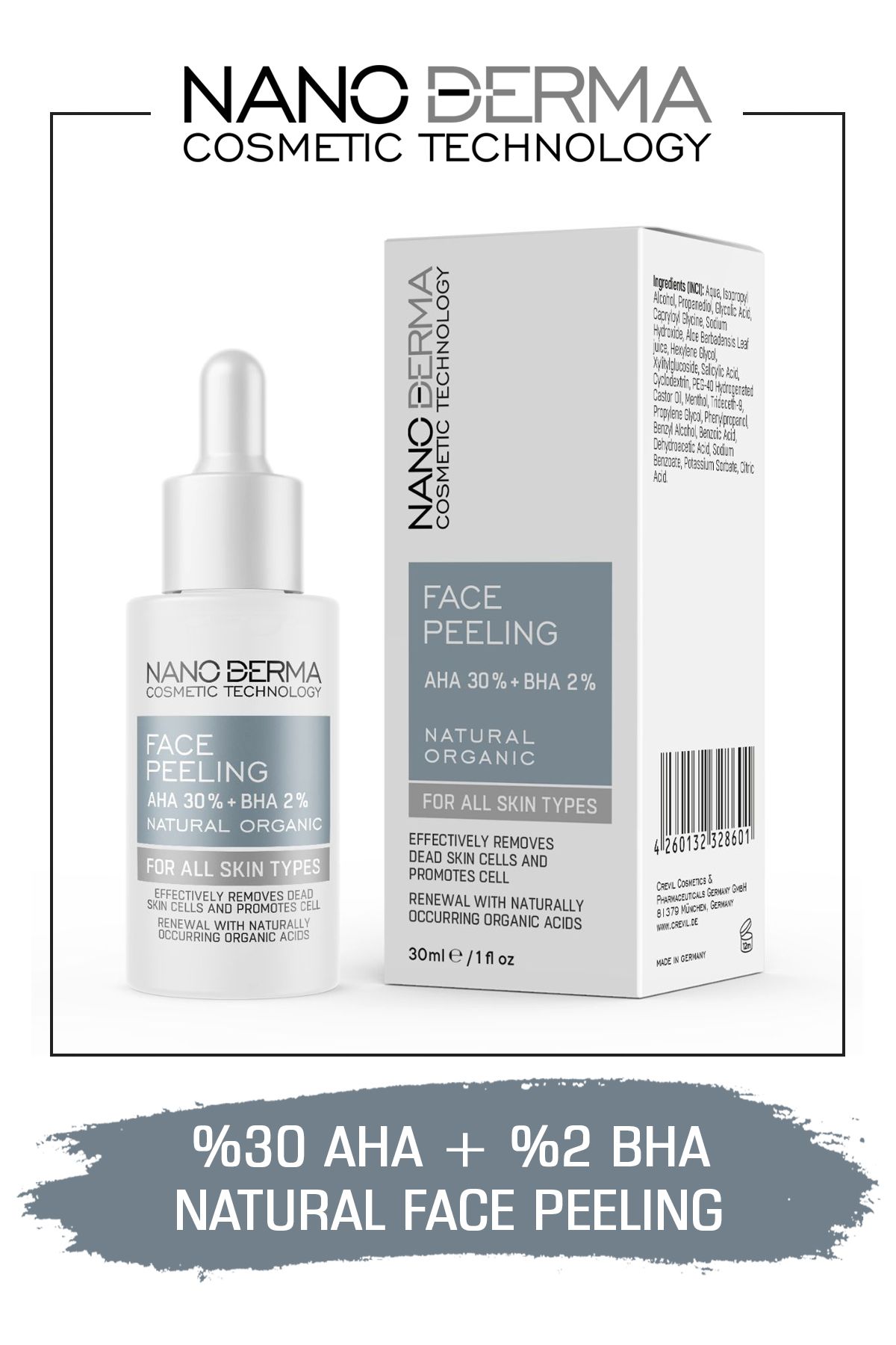 Nanoderma Face Peeling 30 Aha 2 Bha Cilt Tonu Esitleyici Leke Karsiti Yenileyici Kirmizi Peeling Serum 30ML
