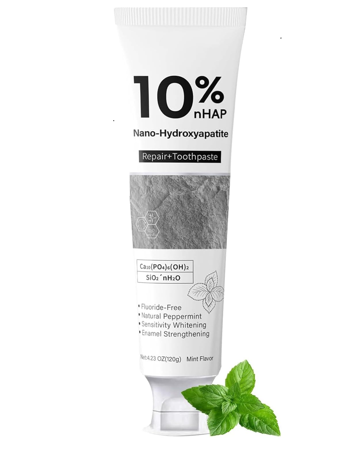 Product name: Product Name: Nano Hydroxyapatite Toothpaste 10 Taste: Natural mint Age: Adults Product form: Cream Material: Fluoride-free Weight: 120g tube 2 pieces Please note: Due to manual measurements, the dimensions may vary slightly. Due to different monitors and lighting effects, the actual color of the product may be slightly different from the image.COMPLETE CARE: 120g toothpaste that whitens naturally while brushing and leaves a clean feeling. SENSITIVE TEETH: Specially formulated for sensitive teeth, providing gentle yet effective cleaning without irritation. ENAMEL PROTECTION: Strengthens tooth enamel and restores tooth surface for daily wear protection. NATURAL INGREDIENTS: Fluoride-free formula with natural peppermint flavor for fresh breath and gentle cleansing. ADVANCED FORMULA: Contains 10 nano-hydroxyapatite, three times more than other brands, for effective dental care and remineralization.Nano-hydroxyapatiet tandpasta, nieuwe verbeterde formule, versterkt het glazuur, fluoridevrije tandpasta, mild voor gevoelige tanden, 120 g (1) Productnaam: Productnaam: Nano Hydroxyapatiet tandpasta 10 Smaak: Natuurlijke munt Leeftijd: Volwassenen Productvorm: Crème Materiaal: Fluoridevrij Gewicht: 120 g tube 2 stuks Let op: Vanwege handmatige metingen kunnen de afmetingen enigszins afwijken. Door verschillende monitoren en lichteffecten kan de werkelijke kleur van het product enigszins afwijken van de afbeelding.COMPLETE VERZORGING: 120g tandpasta die natuurlijk witmaakt tijdens het poetsen en een schoon gevoel achterlaat. GEVOELIGE TANDEN: Speciaal ontwikkeld voor gevoelige tanden, biedt zachte maar effectieve reiniging zonder irritatie. EMAILBESCHERMING: Versterkt het tandglazuur en herstelt het tandoppervlak voor dagelijkse bescherming tegen slijtage. NATUURLIJKE INGREDIËNTEN: Fluoridevrije formule met natuurlijke pepermuntsmaak voor een frisse adem en zachte reiniging. GEAVANCEERDE FORMULE: Bevat 10 nano-hydroxyapatiet, drie keer meer dan andere merken, voor effectieve tandverzorging en remineralisatie.
