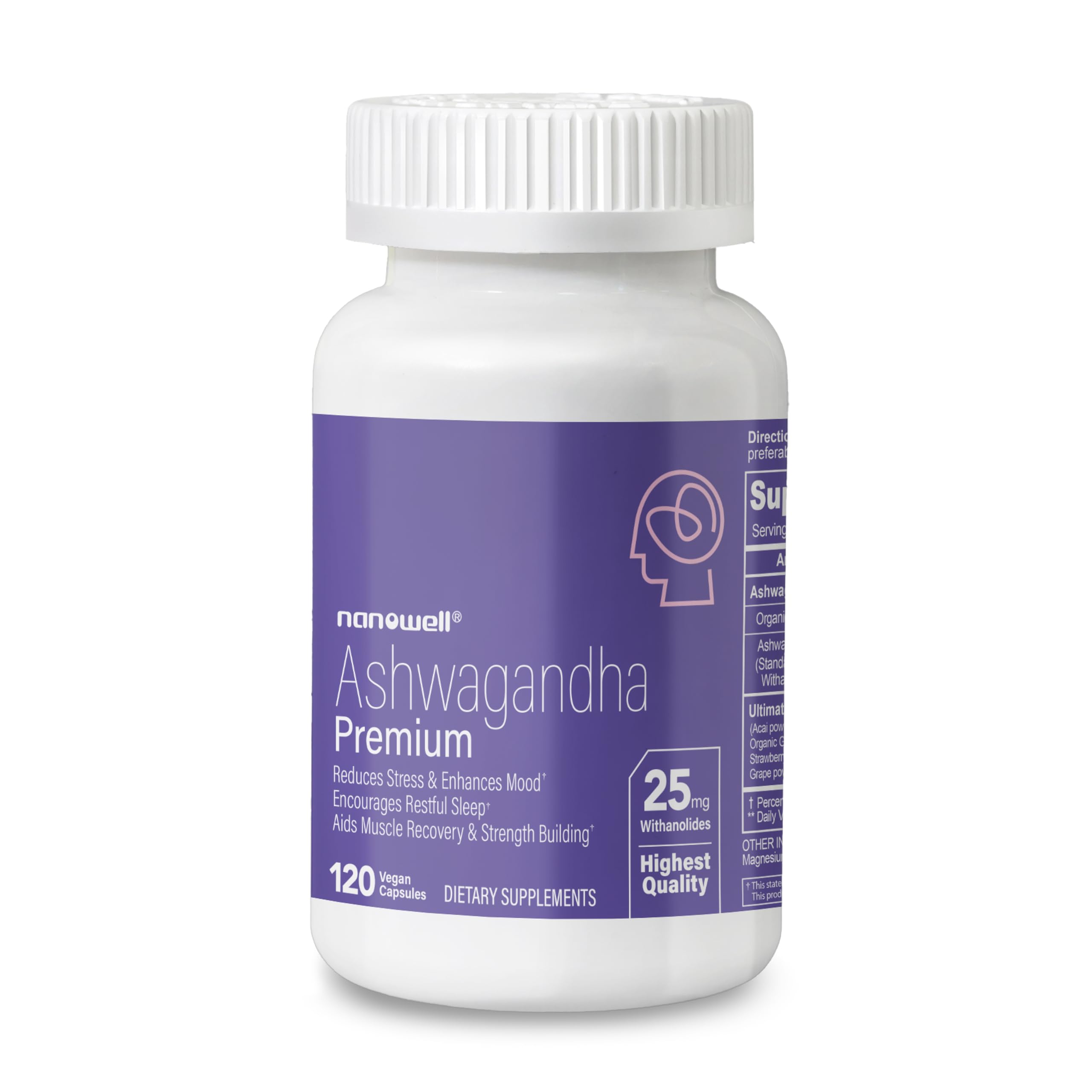 NANOWELL Ashwagandha Premium - 120 Vegan Capsules High Potency 5% Withanolides Root Extract Organic Ashwagandha Powder Mixed Berries - Supports Relaxation & Mood Balance - 60 Servings 120 Count (Pack of 1)