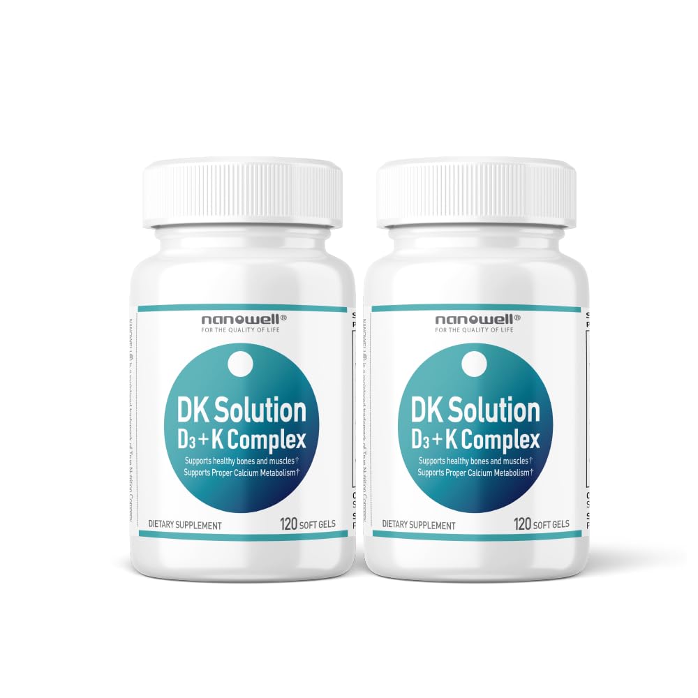 NANOWELL DK Solution 120 Softgels X 2 Bottles (Vitamin D3 + K Complex) - Dietary Supplement for Bone Teeth and Muscle Health Immune Support (240 Count) 120 Count (Pack of 2)