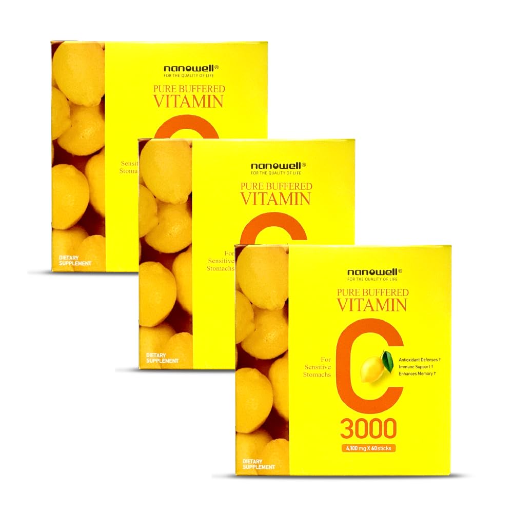 NANOWELL Pure Buffered Vitamin C 3000 mg per Serving Dietary Supplement for Immune Support - 60 Sticks x 3 Boxes 6 Months Supply (180 Count)