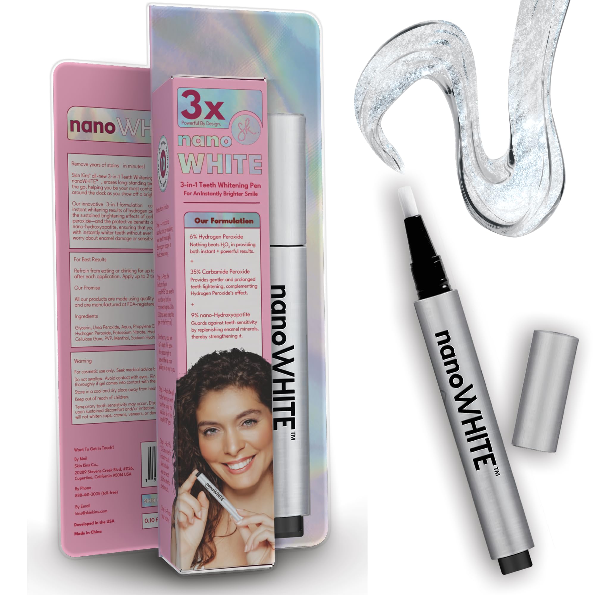 See results in 60 seconds. The nanoWHITE 3-in-1 Teeth Whitening Pen delivers instant whitening while nano-hydroxyapatite repairs and strengthens your enamel. Whiter teeth that last - without the sensitivity.