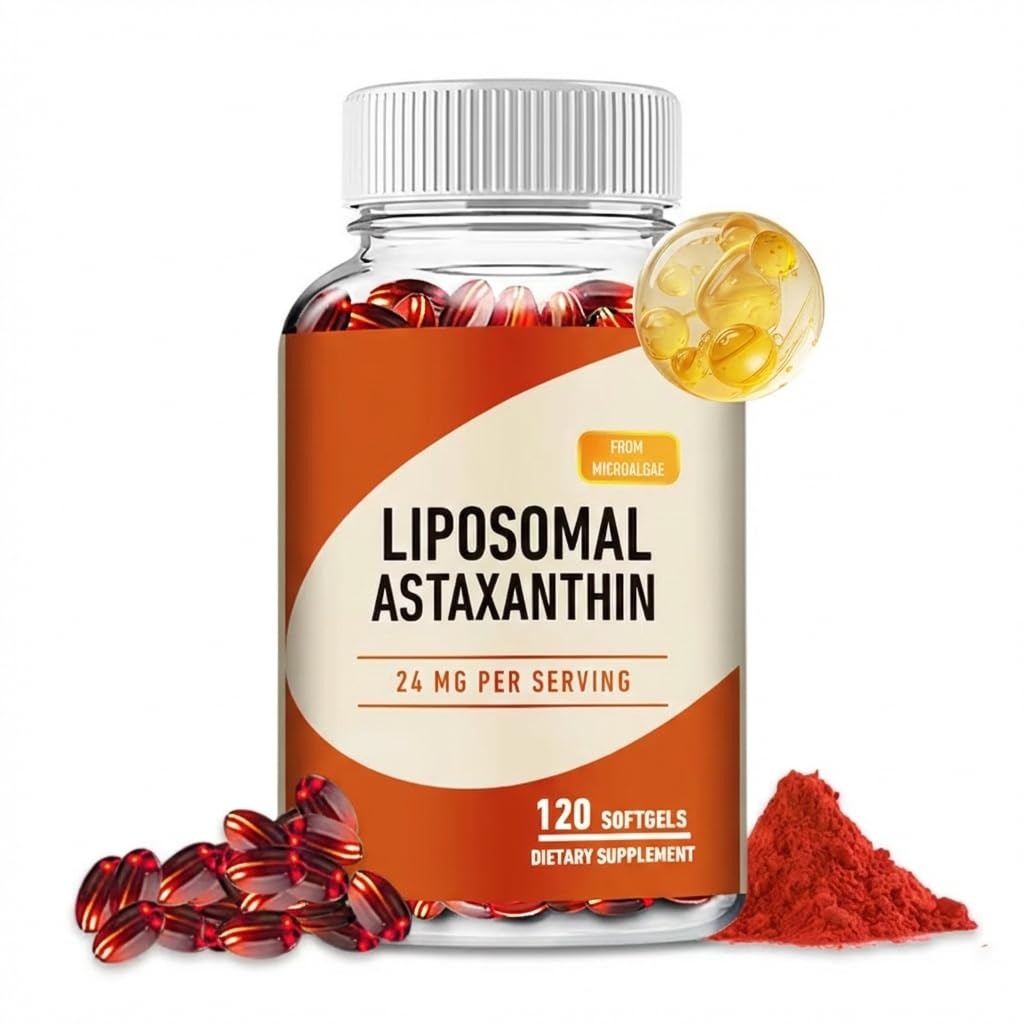 QUALITY SAFETY: 120 Softgels (60 Servings). Manufactured in a GMP-compliant facility. Non-GMO and Gluten-Free. Label clearly displays all ingredients and manufacturer contact information. SUPPORTS EYE HEALTH: Provides nutritional support for the eyes. Helps maintain visual performance and supports accommodation endurance during tasks requiring focus, such as screen use. SUPPORTS SKIN HEALTH: Helps promote skin hydration and elasticity. Astaxanthin acts as an antioxidant that supports the skin's natural barrier and overall appearance during normal exposure to environmental stressors. LIPOSOMAL DELIVERY FOR ABSORPTION: Formulated with 200mg of Phosphatidylcholine to form a liposomal environment. This supports the bioavailability of fat-soluble nutrients, aiding their delivery and utilization by the body. HIGH POTENCY 24MG FORMULA: Delivers 24mg of Astaxanthin per serving. Astaxanthin is a naturally occurring carotenoid known to support overall cellular health and antioxidant activity within the body.