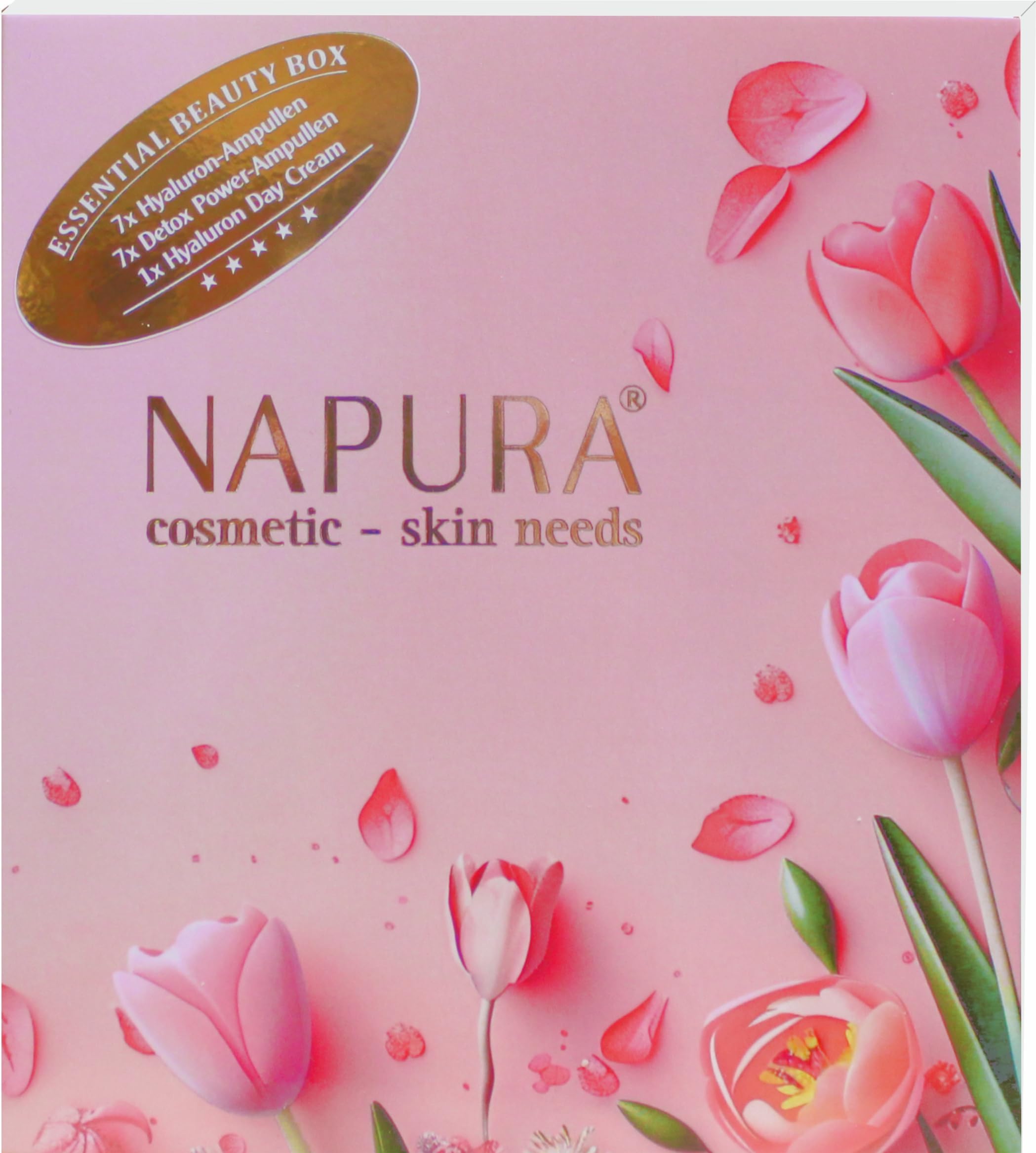 This beautiful beauty set is the perfect way to welcome spring. The Hyaluron Duo Day Cream intensely and lastingly hydrates the skin, leaving it feeling soft and refreshed. Combined with the Hyaluron Duo Ampoule, the effect is further enhanced, while the Detox Tea Power Ampoule also protects the skin from harmful environmental aggressors. An excellent gift idea. SAFETY WARNING Avoid contact with eyes. For external application to the skin, use the bottle opener provided.NAPURA DeTox Tea Extract Power Ampoules. Box contents: 7 x 2 ml. The ampoule contains a complex of three types of tea that can protect the skin against oxidative lipid degradation. Oxidative stress, such as pollution, excessive UV rays, or nicotine, damages cells. White tea reduces DNA damage green tea has very strong antioxidant properties and the flavonoids in Rooibos tea can promote microcirculation. NAPURA. Box contents: 7 x 2 ml of hyaluronic acid to hydrate and smooth dehydrated skin. The combination of hyaluronic acid and a physiological moisturizer composed of amino acids, urea, and mono- and disaccharides hydrates the skin while protecting it from moisture loss. NAPURA Hyaluron Duo Day Cream - Intense and rich moisturizing care with hyaluronic acid, shea butter, and vitamin E acetate combines the effective power of hyaluronic acid with the nourishing effect of shea butter - for smooth, supple, and intensely hydrated skin. Hyaluronic acid provides instant and lasting hydration, can fill in fine lines, and leaves skin feeling refreshed. Shea butter, known for its nourishing and soothing properties, protects the skin barrier and leaves skin soft and silky, without being greasy. Ideal for dry to normal skin. A perfect gift for Mother's Day, a spring treatment, or as part of a NAPURA beauty kit.NAPURA Boîte de beauté avec 7 ampoules Detox Tea Power de 2 ml, 7 ampoules à l'acide hyaluronique duo de 2 ml, 50 ml de crème de jour Hyaluron Duo Day, soin hydratant intense, hydratantDESCRIPTION DU PRODUIT DESCRIPTION DU PRODUIT Cette magnifique boîte de beauté est le début parfait du printemps. La crème de jour Hyaluron Duo hydrate la peau de manière intense et durable et procure une sensation de douceur et de fraîcheur sur la peau. En combinaison avec l'ampoule Hyaluron Duo, l'effet est encore intensifié, l'ampoule Detox Tea Power protège également la peau contre les agressions environnementales nocives. Excellente idée cadeau AVERTISSEMENT DE SÉCURITÉ Éviter tout contact avec les yeux, pour une application externe sur la peau, utiliser le décapsuleur fourniNAPURA DeTox Tea Extrait Power Ampoule Contenu de la boîte : 7 x 2 ml. L'ampoule contient un complexe de trois types de thé qui peut protéger la peau contre la dégradation oxydative des lipides. Le stress oxydatif comme la pollution, les rayons UV trop intenses ou la nicotine endommagent les cellules. Le thé blanc réduit les dommages à l'ADN le thé vert a de très fortes propriétés anti-oxydantes et les flavonoïdes du thé Roibush peuvent favoriser la microcirculation. NAPURA Contenu de la boîte : 7 x 2 ml d'acide hyaluronique pour hydrater et lisser les peaux déshydratées. La combinaison d'acide hyaluronique et d'un hydratant physiologique composé d'acides aminés, d'urée et de mono-disaccharides, hydrate la peau tout en la protégeant de la perte d'hydratation. NAPURA Crème de jour Hyaluron Duo - Soin hydratant intense et riche avec acide hyaluronique, beurre de karité, acétate de vitamine E combine la puissance efficace de l'acide hyaluronique avec l'effet nourrissant du beurre de karité - Pour une peau lisse, souple et intensément hydratée. L'acide hyaluronique hydrate instantanément et durablement, peut combler les ridules et procure une sensation de fraîcheur sur la peau. Le beurre de karité, connu pour ses vertus nourrissantes et apaisantes, protège la barrière cutanée et rend la peau douce et soyeuse, sans la graisser. Idéal pour les peaux sèches à normales. Cadeau pour la fête des mères, cure de printemps, kit de beauté NAPURA avec.