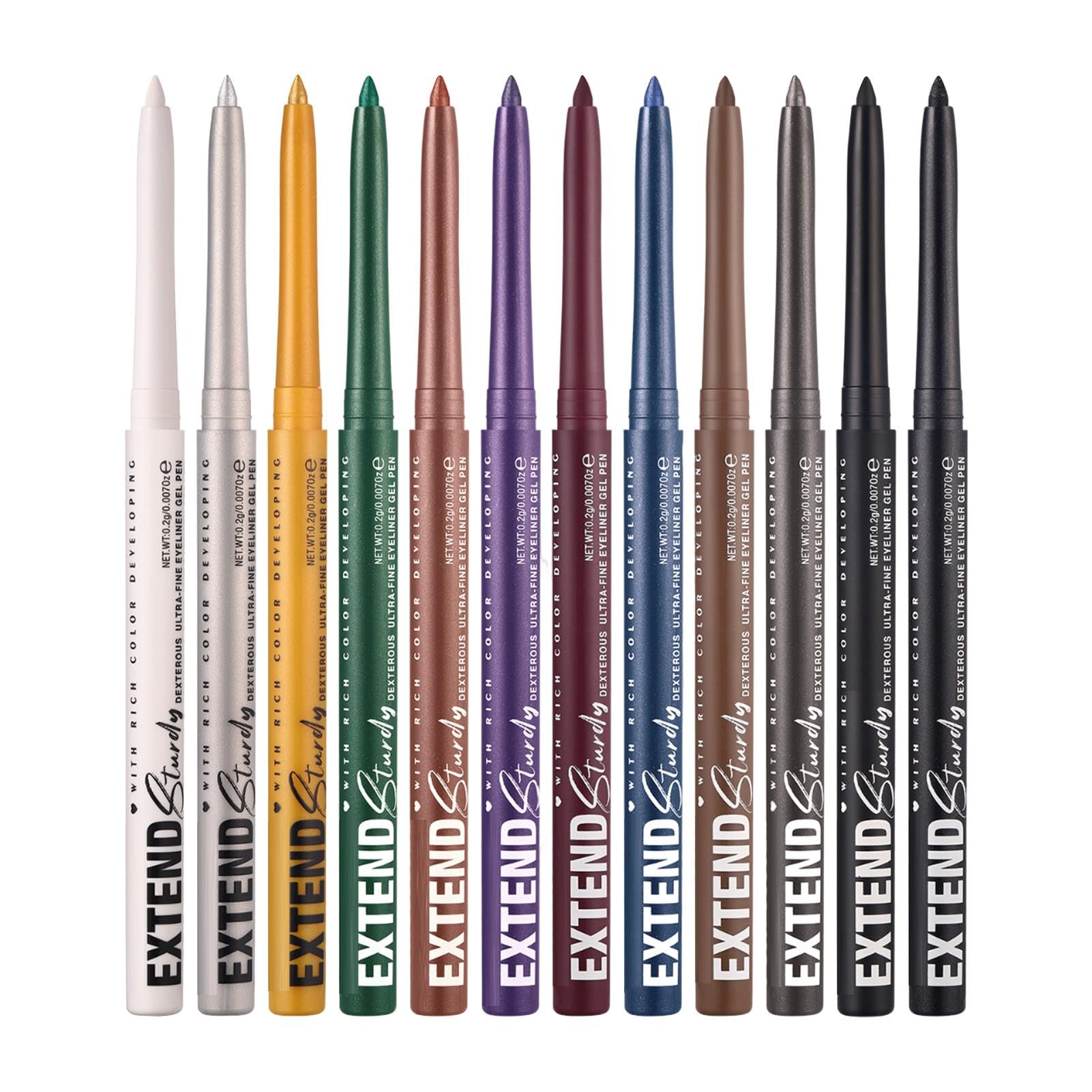 Our gel eyeliner is perfect for makeup application. Its silky-smooth formula glides on easily and is safe for contact lens wearers. You'll love how easy it is to control the thickness and shape of your eyeliner. Achieve the perfect wing with our gel eyeliner. Specification: Product Name: Gel Eyeliner Net Content: 0.2g x 12 units Package Contents: 12 eyeliner pencils Note: Due to lighting and individual monitor settings, the item's color may differ slightly from the picture. Due to different manual measurements, please allow a 1-2cm size difference. SAFETY WARNING Not applicableA multifunctional essential: The perfect transition from subtle eyeshadow to dramatic eyeliner, our gel eyeliner offers a spectrum of colors, allowing you to paint both delicate faces and bold, colorful statements. Outdoor appeal: Designed for comfort, the small size of this gel eyeliner fits perfectly in your purse or makeup bag, ensuring you can enhance your eye makeup for any occasion, from Christmas and weddings to graduations, making it a great gift for makeup lovers who appreciate outdoor elegance. Clear and defined: Achieve a perfect, modern look with ease. Our gel eyeliner allows you to draw sharp, refined lines, shaping and defining your eyes for a confident, modern look. Sophisticated definition: Experience the luxurious, silky formula of our gel eyeliner for stunning eyes that last for hours. Get high color payoff with a long-lasting, professional makeup effect that won't smudge or run. Glide on effortlessly and stay polished all day. Easy-to-use application: Our gel eyeliner is carefully crafted with a formula that glides on smoothly for precise application. Safe for contact lens wearers, it's easy to apply, making it perfect for everyone from beginners to professionals, and ensuring a hassle-free makeup routine.Eyeliner liquide, crayons eyeliners étanches Ensemble de crayons eyeliner 12 couleurs - Crayon rotatif pour eyeliner lèvres et sourcils ensemble de cosmétiquesDESCRIPTION DU PRODUIT DESCRIPTION DU PRODUIT Notre eye-liner en gel est parfait pour les performances de maquillage. Sa formule soyeuse glisse facilement et est sans danger pour les porteurs de lentilles de contact. Vous allez adorer à quel point il est facile de contrôler l'épaisseur et la forme de votre eyeliner. Obtenez l'aile parfaite avec notre eye-liner en gel. Spécification : Nom du produit : eyeliner gel Contenu net : 0,2 g x 12 unités. Contenu du colis : 12 crayons eyeliner. Remarque : En raison de l'éclairage et des paramètres propres à chaque écran, la couleur de l'article peut légèrement différer de celle de la photo. En raison des différentes mesures manuelles, veuillez prévoir une différence de taille de 1 à 2 cm. AVERTISSEMENT DE SÉCURITÉ Ne s'applique pasIndispensable multifonctionnel : transition parfaite d'un fard à paupières subtil à un eye-liner spectaculaire, notre eye-liner en gel offre un spectre de couleurs, permettant à la fois de peindre le visage délicat et des déclarations audacieuses et colorées. Attraction en plein air : conçu pour plus de confort, la petite taille de cet eye-liner en gel tient parfaitement dans votre portefeuille ou votre sac de maquillage, ce qui garantit que vous pouvez améliorer votre maquillage des yeux pour toutes les occasions, qu'il s'agisse de Noël, d'un mariage ou d'une remise de diplôme, ce qui en fait un excellent cadeau pour les amateurs de maquillage. qui aiment l'élégance en plein air. Clair et défini : obtenez un look parfait et moderne en toute simplicité. Notre eye-liner en gel vous permet de dessiner des lignes pointues et raffinées, de façonner et de souligner vos yeux pour un look sûr et moderne. Définition sophistiquée : découvrez la formule soyeuse luxueuse de notre eye-liner en gel pour des yeux époustouflants qui durent des heures. Obtenez une couleur haute avec un effet de maquillage professionnel et durable qui ne coule pas et ne coule pas. Glissez sans effort et restez élégant toute la journée. Application facile à utiliser : notre eye-liner en gel est soigneusement conçu avec une formule qui glisse sans effort pour une application précise. Sans danger pour les utilisateurs de lentilles de contact, il est facile à appliquer, ce qui le rend parfait pour tout le monde, des débutants aux professionnels, et garantit une routine de maquillage sans tracas.