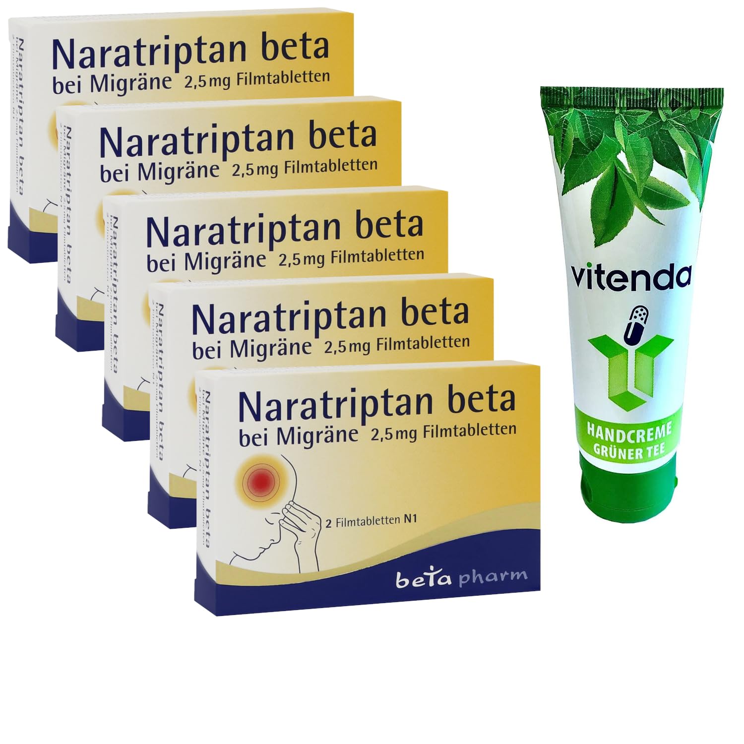 NARATRIPTAN beta bei Migräne 2,5 mg 5x2 Filmtabletten inclusive einer Handcreme von vitenda