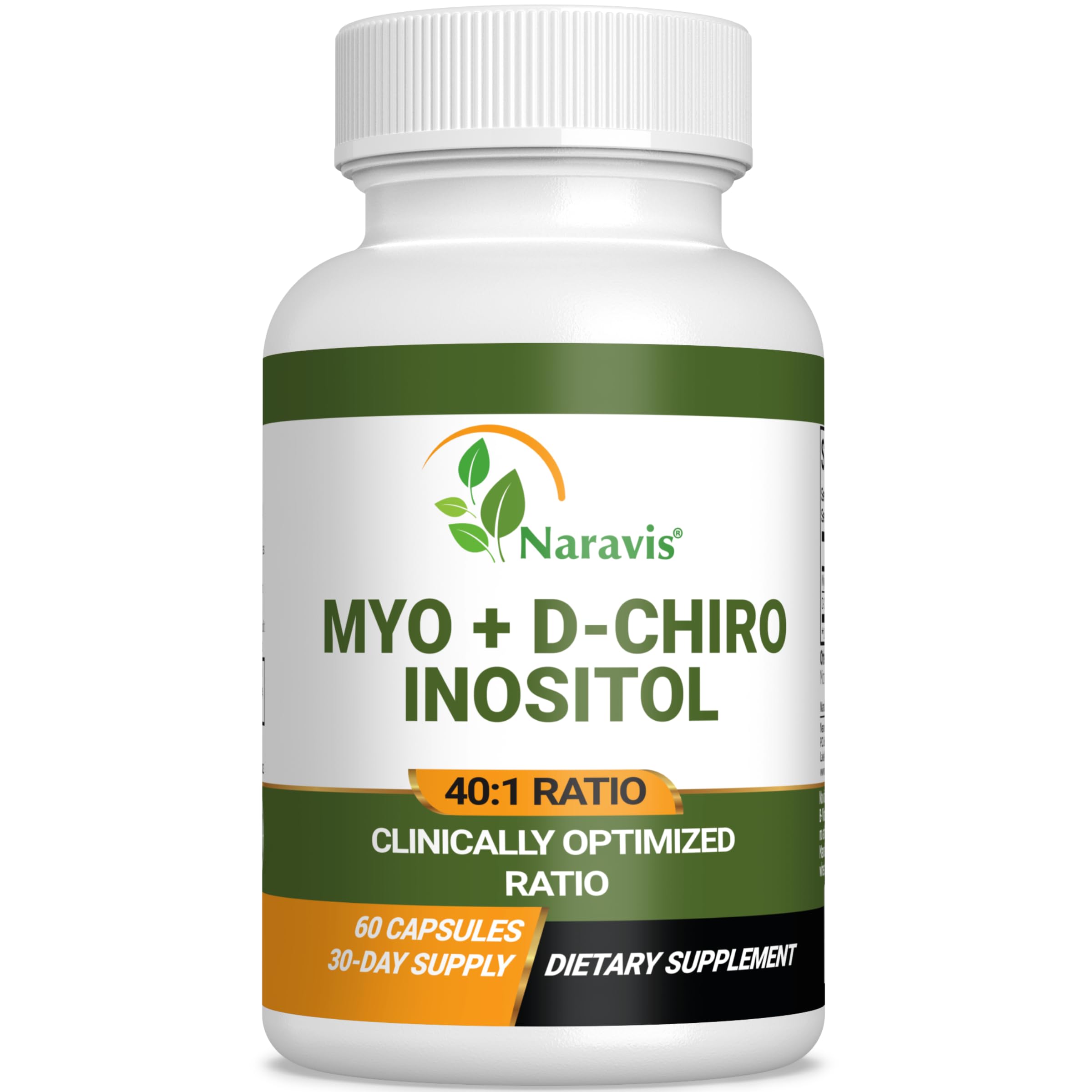 Naravis Myo-Inositol & D-Chiro Inositol Supplement | 40:1 Ratio with Caronositol | Supports Hormonal Balance Ovarian Function & Cycle Regularity | Vegan Gluten-Free No Added B6 | 60 Capsules
