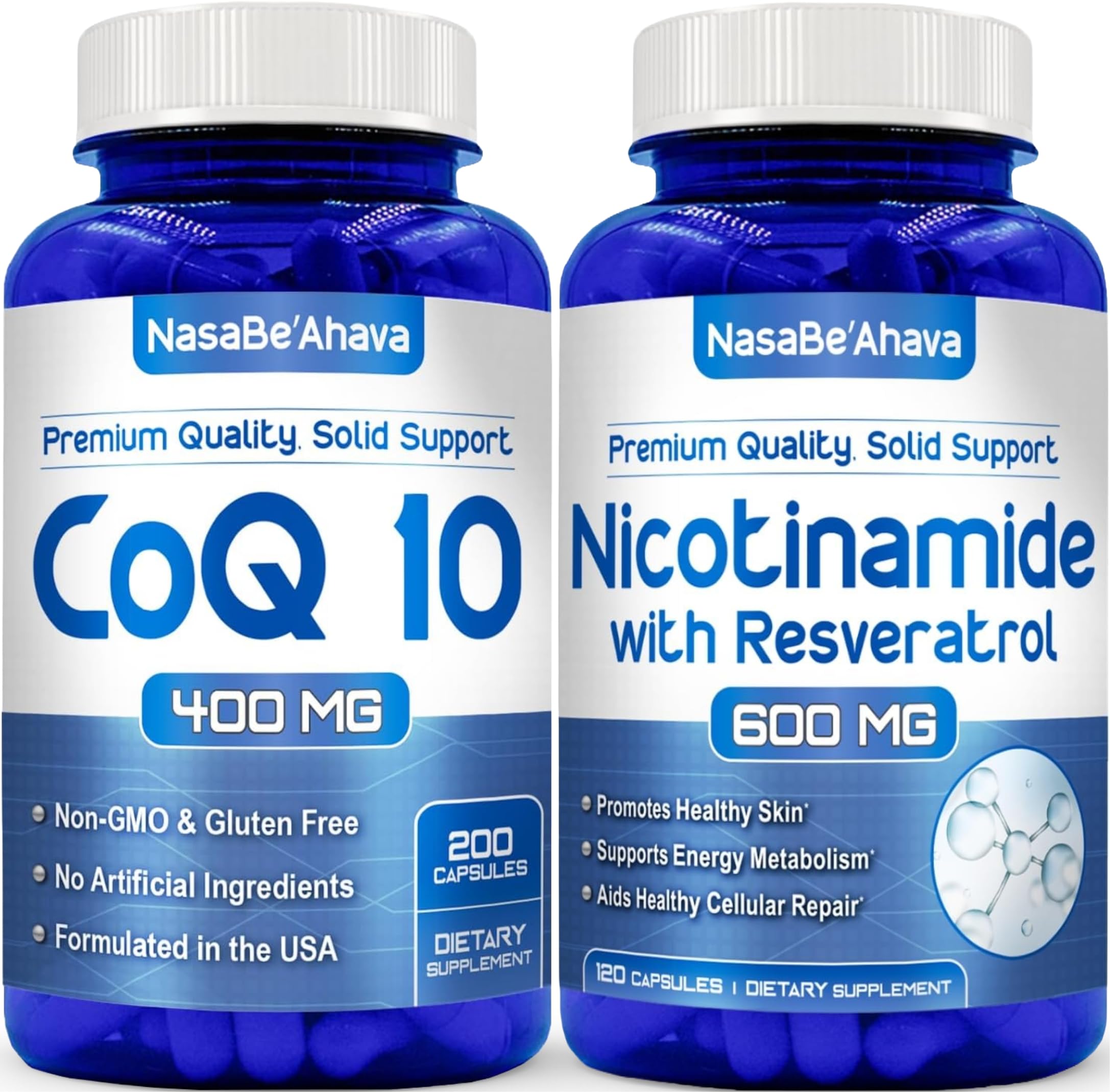 Want More Supplements - We're proud to present a wide range of premium quality supplements including CoQ10, Phytoceramides, Resveratrol, Pterostilbene and more Just visit the NasaBeahava Store. Premium Quality Solid Support - NasaBeahava is committed to making the highest quality supplements affordable for all consumers. Made with Love - We make it our mission to provide accessible supplements to all which is why our brain health supplements are made without artificial flavors and colors or preservatives. Bundle Save - Get more bang for your buck when you combine Nicotinamide and Resveratrol with our popular Coenzyme Q10 Supplement. What's Inside - We combined 2 of the most potent brain nutrients to protect you when you need it most with tried and true ingredients to help enhance cognition and cellular wellness.