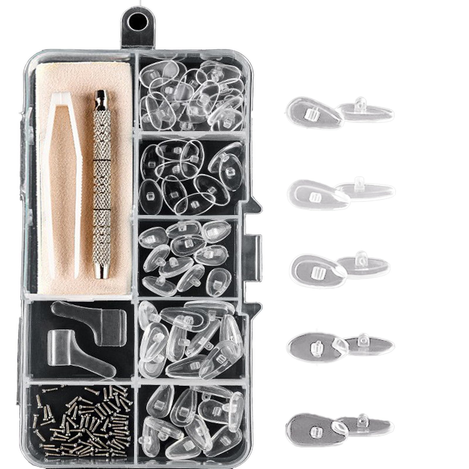 1scope of delivery: 5 x airbag objective revolver in size L, 5 pair of airbag nose pieces, 5 pairs of airbag lenses, 5 pairs oval lens revolver, 10 pairs of thin nose revolvers, 1 pair of slide-resistant ear hooks, 1 x tweezers, 1 x screwdriver, 1x glasses cleaning cloth, 1 x nose piece storage box.And a sufficient amount of screws for glasses.Product size: L-airbag nose piece (0.7 x 1.4 cm), M-airbag nose piece (0.7 x 1.2 cm), S-Airbag lensing revolver (0.7 x 1 cm), oval nose piece(0.6 x 1.2 cm), thin nose piece (1.2 x 0.7 cm), suitable for most glasses.A purchase for your family can change the glasses of the glasses many times to ensure the cleanliness of the glasses.Function: Non-slip glasses nasal pieces can better support the glasses and relieve the symptoms when wearing glasses.Sladed: Our non -slip nasal cushion cover can prevent your glasses from slipping from the bridge of the nose, which saves you time to adapt your glasses.This universal nasal cushion can be used with most glasses that have nose pads.SoftOur nose pads are made of new silicone.Super soft, stretchy and durable, it enlarges the contact area between the nose pads and the skin, so that you can say goodbye to symptoms and red spots.1Lieferumfang: 5 x Airbag-Objektivrevolver in Größe L, 5 Paar Airbag-Nasenstück, 5 Paar Airbag-Objektivrevolver, 5 Paar ovale Objektivrevolver, 10 Paar dünne Nasenrevolver, 1 Paar rutschfeste Ohrhaken, 1 x Pinzette, 1 x Schraubendreher, 1 x Brillenputztuch, 1 x Nasenstück-Aufbewahrungsbox. und eine ausreichende Menge Schrauben für Brillen. Produktgröße: L-Airbag-Nasenstück (0,7 x 1,4 cm), M-Airbag-Nasenstück (0,7 x 1,2 cm), S-Airbag-Objektivrevolver (0,7 x 1 cm), ovales Nasenstück (0,6 x 1,2 cm), dünnes Nasenstück (1,2 x 0,7 cm), geeignet für die meisten Brillen. Ein Kauf für Ihre Familie kann die Nasenauflage der Brille viele Male wechseln, um die Sauberkeit der Brille zu gewährleisten. Funktion: Rutschfeste Brillen-Nasenstücke können die Brille besser unterstützen und die Beschwerden beim Tragen einer Brille lindern. Rutschfest: Unsere rutschfeste Nasenpolsterabdeckung kann verhindern, dass Ihre Brille vom Nasenrücken rutscht, wodurch Sie die Zeit sparen, Ihre Brille anzupassen. Dieses universelle Nasenpolster kann mit den meisten Brillen verwendet werden, die Nasenpads haben. WeichUnsere Nasenpads bestehen aus neuem Silikon. Super weich, dehnbar und langlebig, es vergrößert die Kontaktfläche zwischen den Nasenpads und der Haut, sodass Sie sich von Beschwerden und roten Flecken verabschieden können.Nasenpolster-Abdeckungen für Brillen, Silikon-Nasenpolster für Brille, weiches Brillenreparatur-Set mit Nasenstück-Pads, rutschfeste Brillen-Schutzhüllen, durchsichtig, Einheitsgröße