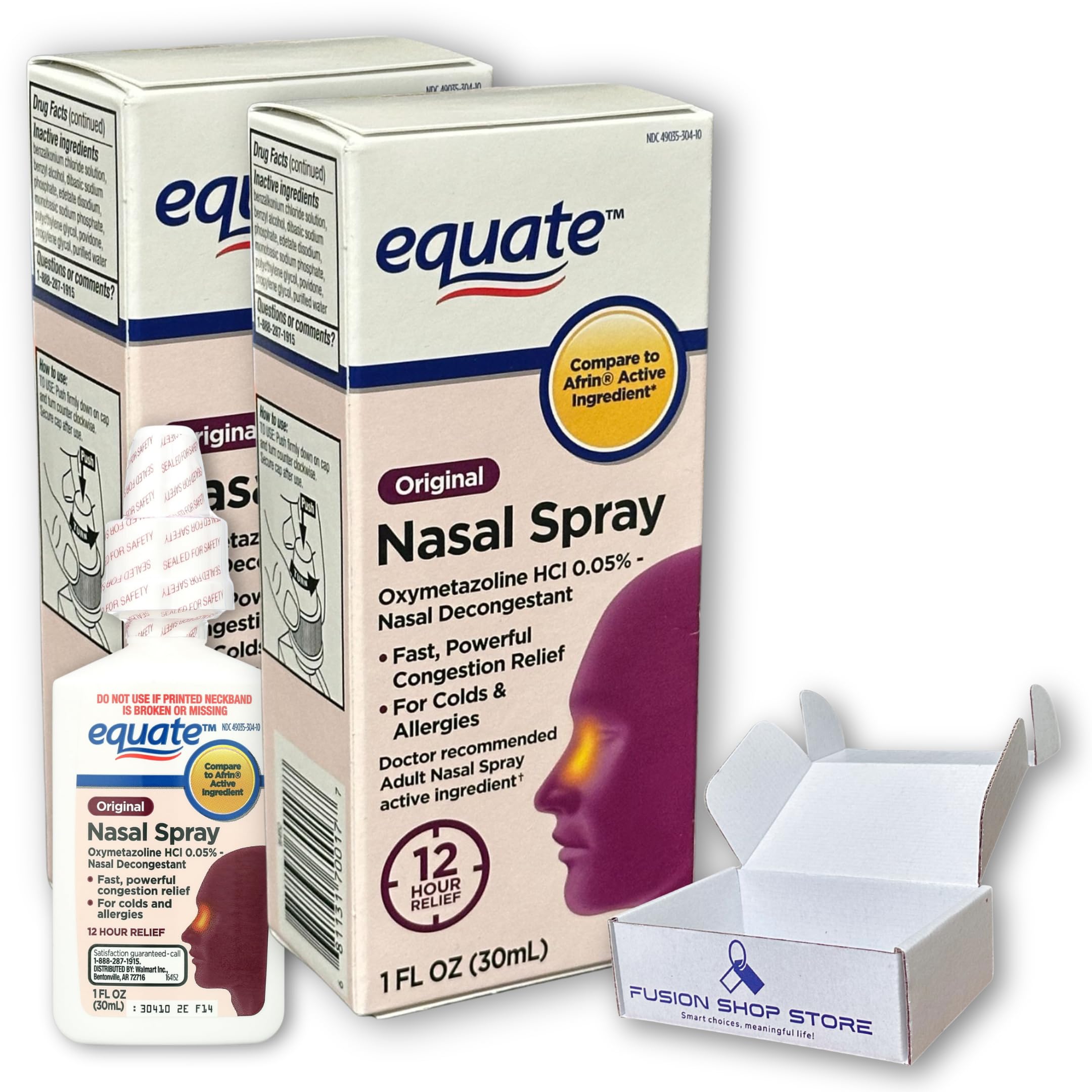 Nasal Spray Decongestant- Original 12 Hour Max Strength 1.0 Fluid Ounce (Pack of 2) Boxed by Fusion Shop Store