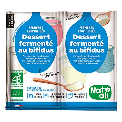 : Rediscover the pleasure of homemade yogurt! 1 sachet for 1 2 liter of milk 4 yogurts! Bifidus preparation! Instructions: Mix the contents of the sachet with 1 2 liter of milk to make 4 yogurts.Bifidus Yogurt Ferment 2x6g. Natali. Ferments, rennet. Baking aid. Sweet grocery.Description du produit Retrouver le plaisir d'un yaourt fait maison! 1 sachet pour 1 2 litre de lait 4 yaourts ! Préparation Bifidus ! Mode d'emploi Mélanger le contenu du sachet avec 1 2 litre de lait pour faire 4 yaourts.Ferment Yaourt Au Bifidus 2X6G. Natali. Ferments, présure. Aide à la pâtisserie. Epicerie sucrée.Natali - Ferment Yaourt Au Bifidus 2X6G - Unité