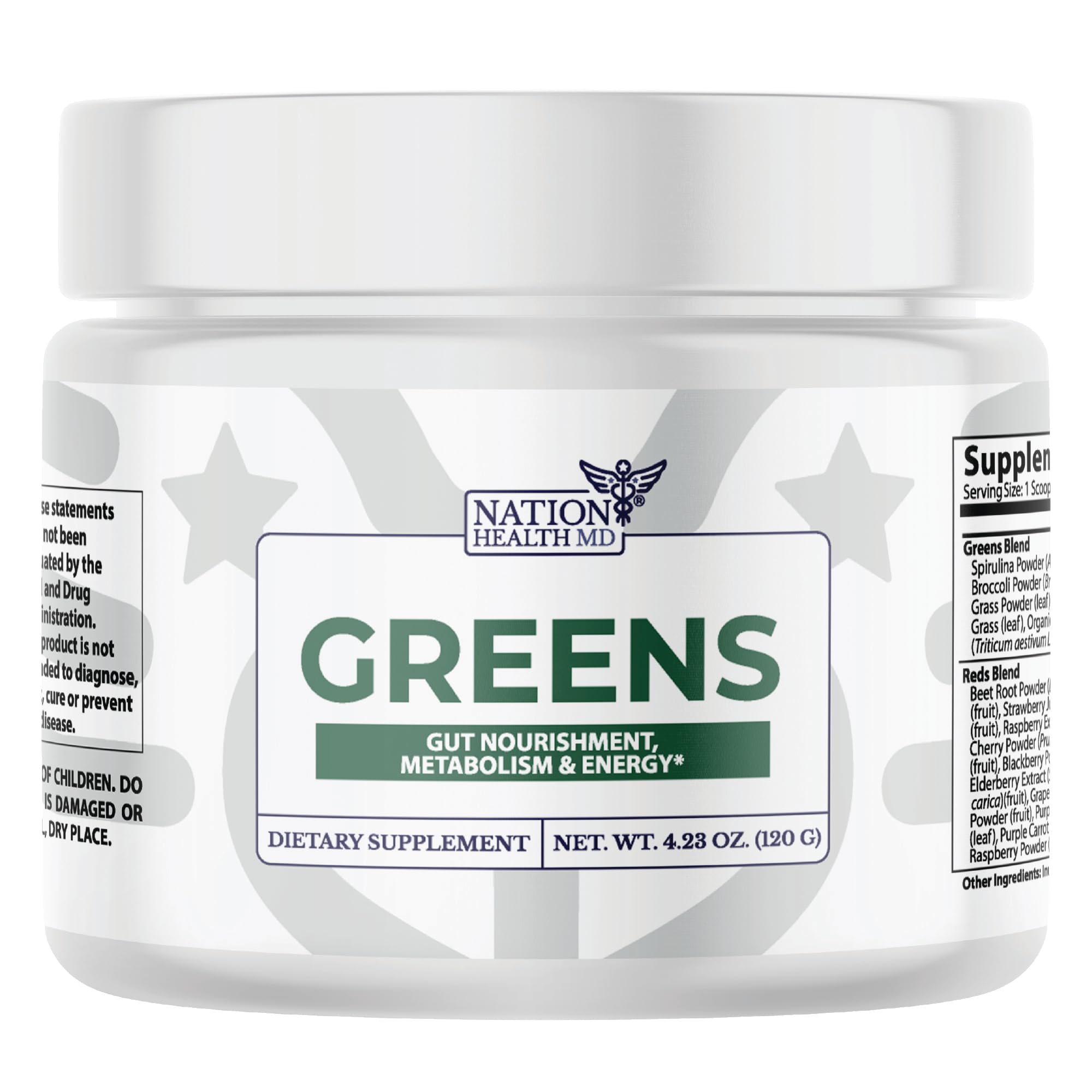 MADE IN USA: Nation Health MD Greens is proudly manufactured in the USA using premium organic ingredients. Our greens formula is vegan, non-GMO, and made without artificial sweeteners, colors, or flavors. . DIGESTIVE HEALTH PROBIOTIC BLEND: Our comprehensive vegetable powder includes beneficial probiotics to help support gut health and digestive balance, while providing essential nutrients from organic greens and vegetables. . POWERFUL ANTIOXIDANT DETOX SUPPORT: This superfood formula blends alkalizing greens supplements with white tea extract and spirulina powder organic, designed toMADE IN USA: Nation Health MD Greens is proudly manufactured in the USA using premium organic ingredients. Our greens formula is vegan, non-GMO, and made without artificial sweeteners, colors, or flavors. help support the body's natural detox processes and provide antioxidant support for overall wellness. . METABOLIC SUPPORT BLEND: Our premium greens powder includes functional ingredients like green tea extract, ceylon cinnamon, ginger powder, and turmeric, formulated to help support a healthy metabolism and promote natural energy production. . ORGANIC SUPER GREENS POWDER NUTRITION: Nation Health MD Greens features a concentrated blend of nutrient-rich greens, including spirulina, chlorella, wheatgrass, and more—offering convenient daily greens support to help complement a balanced diet and overall wellness. .