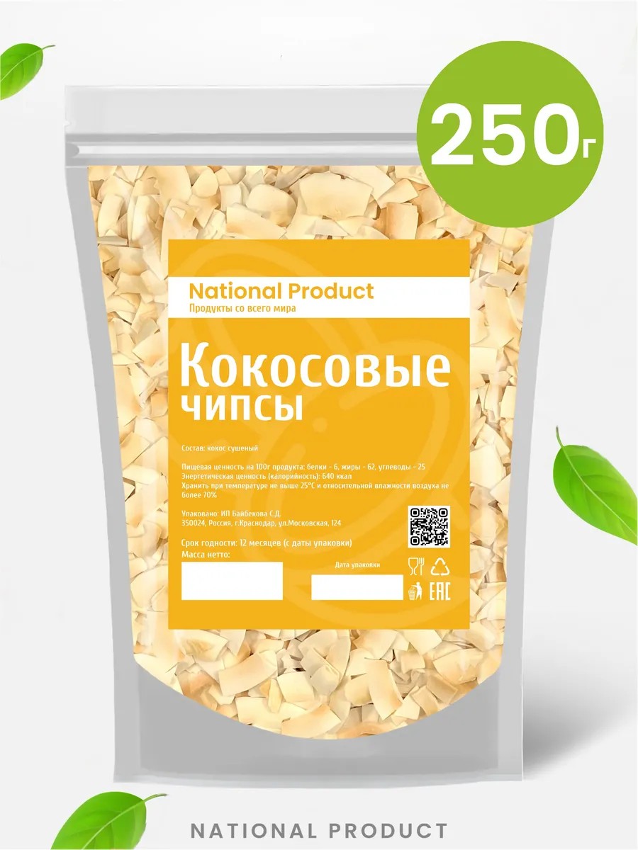National Product Кокосовые чипсы без сахара сухофрукт 250г