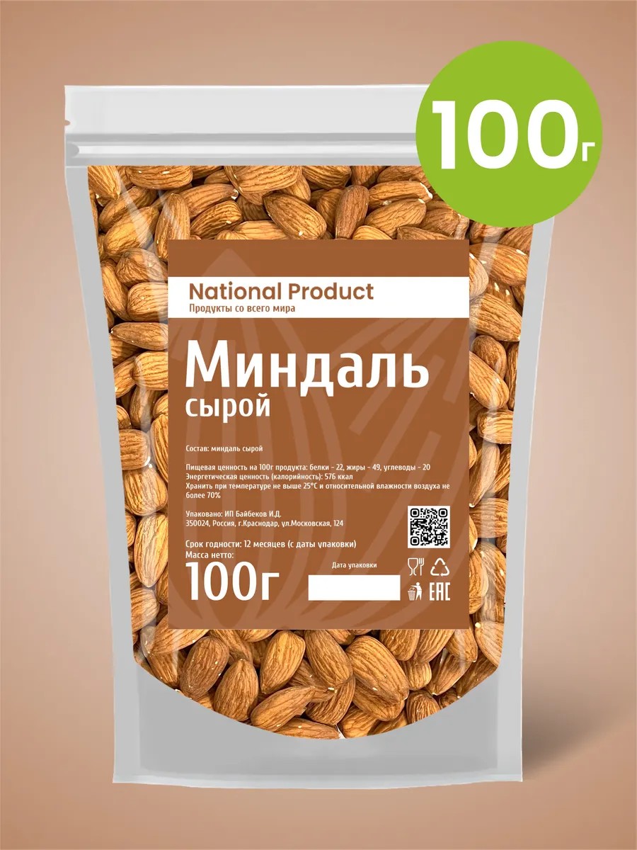 National Product Premium Миндаль сырой очищенный орех натуральный 100г