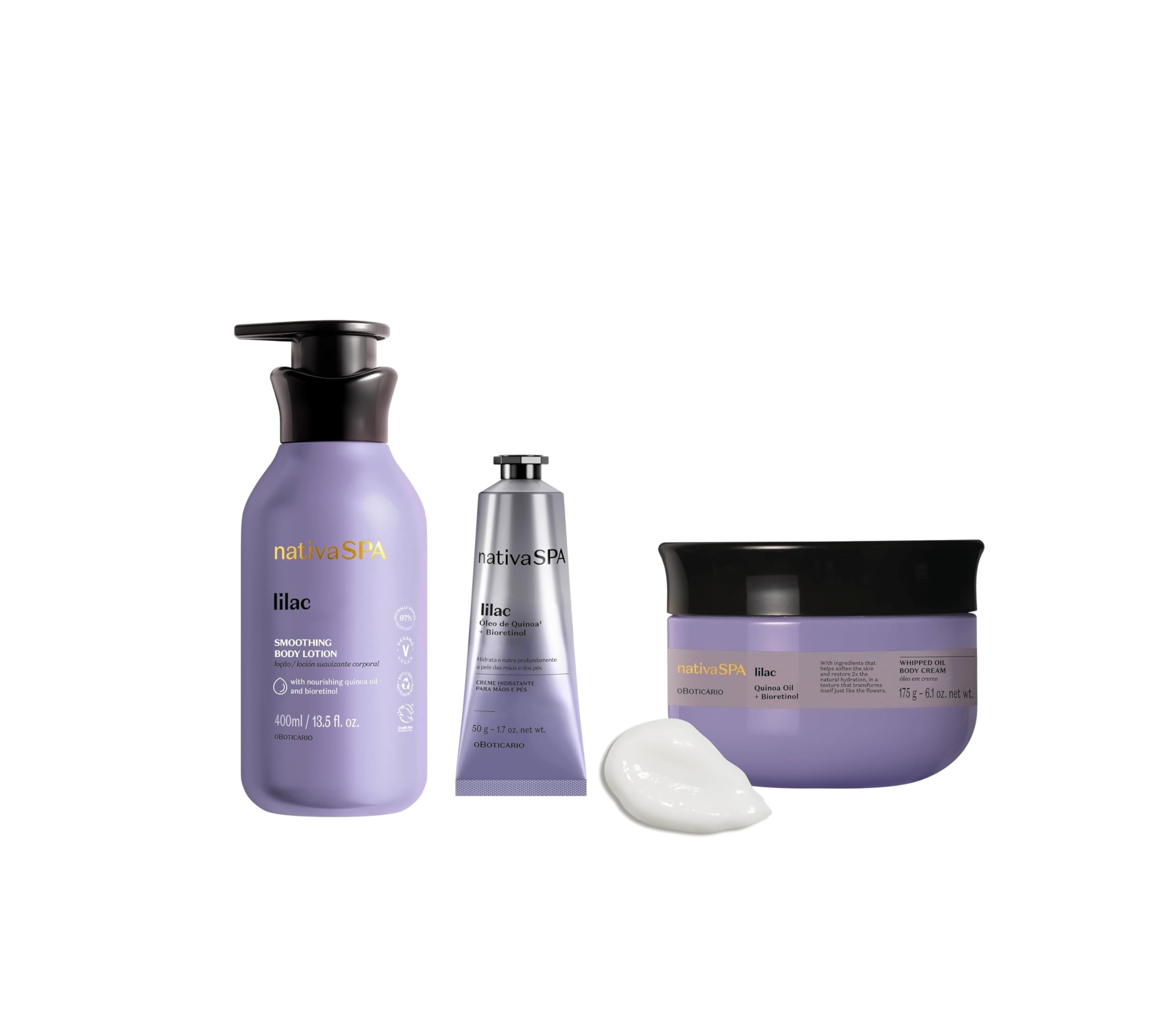 Nativa SPA Body Smoothing Lilac Bundle: Body Lotion, Whipped Body Oil & Hand Cream, with Nourishing Quinoa Oil + Bioretinol (x3)