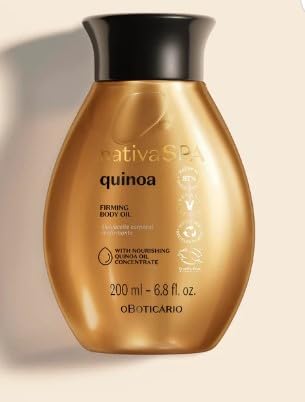 Nativa Spa Quinoa Moisturizing Oil, 200 ml. Nativa Spa. Coat Care. With its innovative and surprising texture, this Nativa Spa Quinoa moisturizing body oil will leave your skin with a nutty and silky feel. Your skin will already be hydrated and fragrant! Nothing but practical for those who don't have much time, and no longer want to miss out on pampering. This moisturizing body oil, developed with sunflower extract and purified quinoa drops, revitalizes the skin by boosting or preventing loss of elasticity. Easy to apply Does not leave skin sticky Preserves moisture, providing deep and lasting hydration. Enveloping fragrance. Usage: Without bath, washing or body stains, apply a moist skin and moisturizing body oil inside the hair. Circular motions.