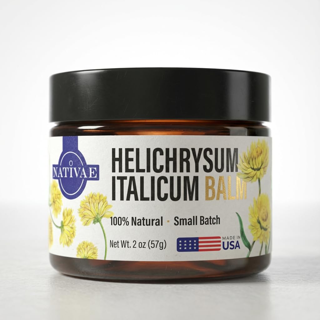 Nativae Helichrysum Balm Helichrysum Italicum Essential Oil Skin Cream for Bruises Veins Burns & Redness Soothing Healing Moisturizer for Face & Body
