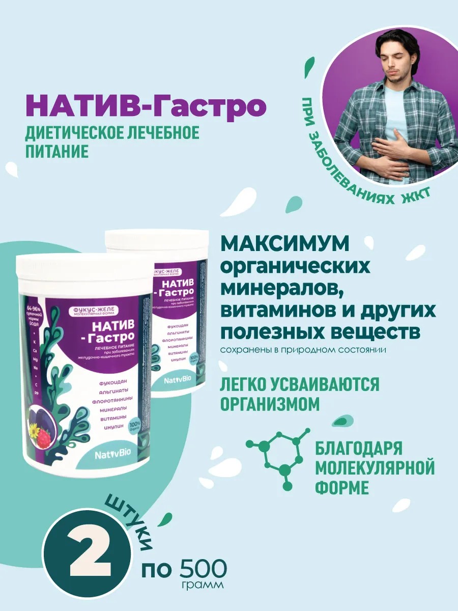 | Полное наименование товара | NativBio. Натив Гастро. (Органические Витамины Морской Йод из фукуса Фукоидан Альгинат Минералы). Для пищеварения |
