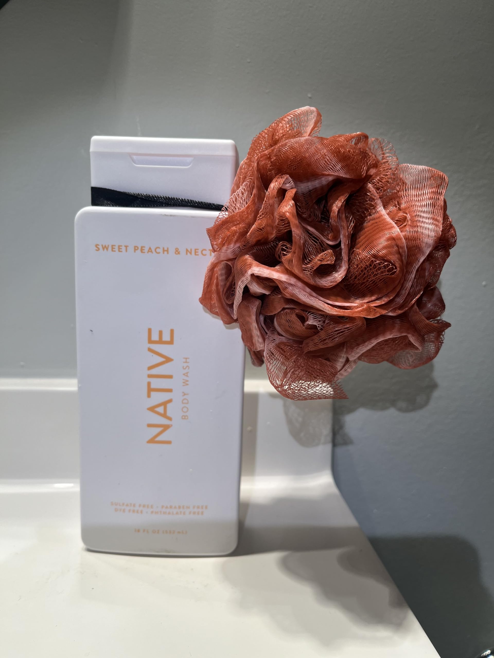 Native Body Wash - Sweet Peach & Nectar - Sulfate Free - 18 fl oz plus one coordinaded loofah. Color may vary. Sweet Peach & Nectar: Soft peach and juicy nectar combine in this bright scent that sparkles like summer.