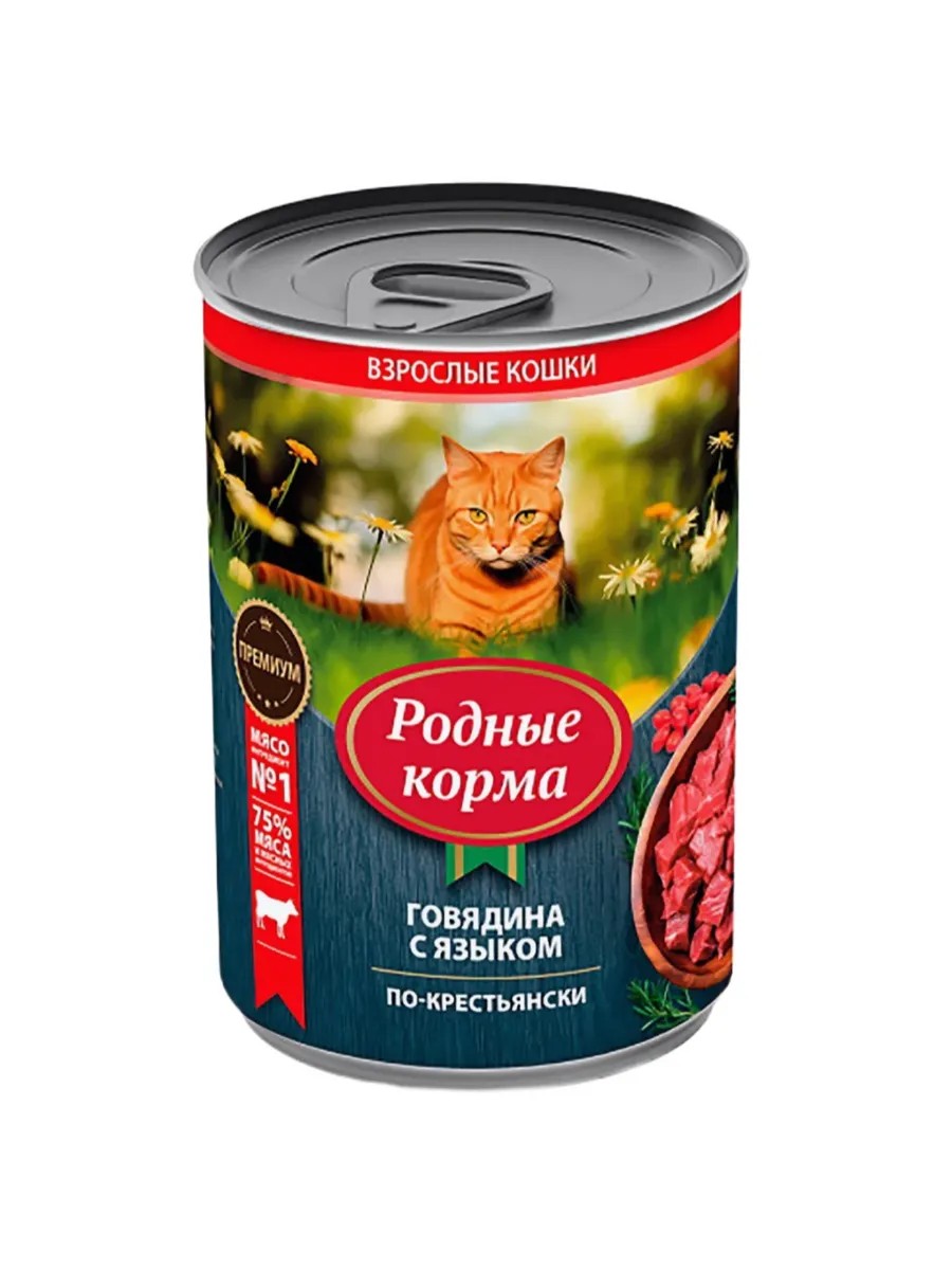 Родные корма Консервы для кошек говядина с языком по-крестьянски, 410 г