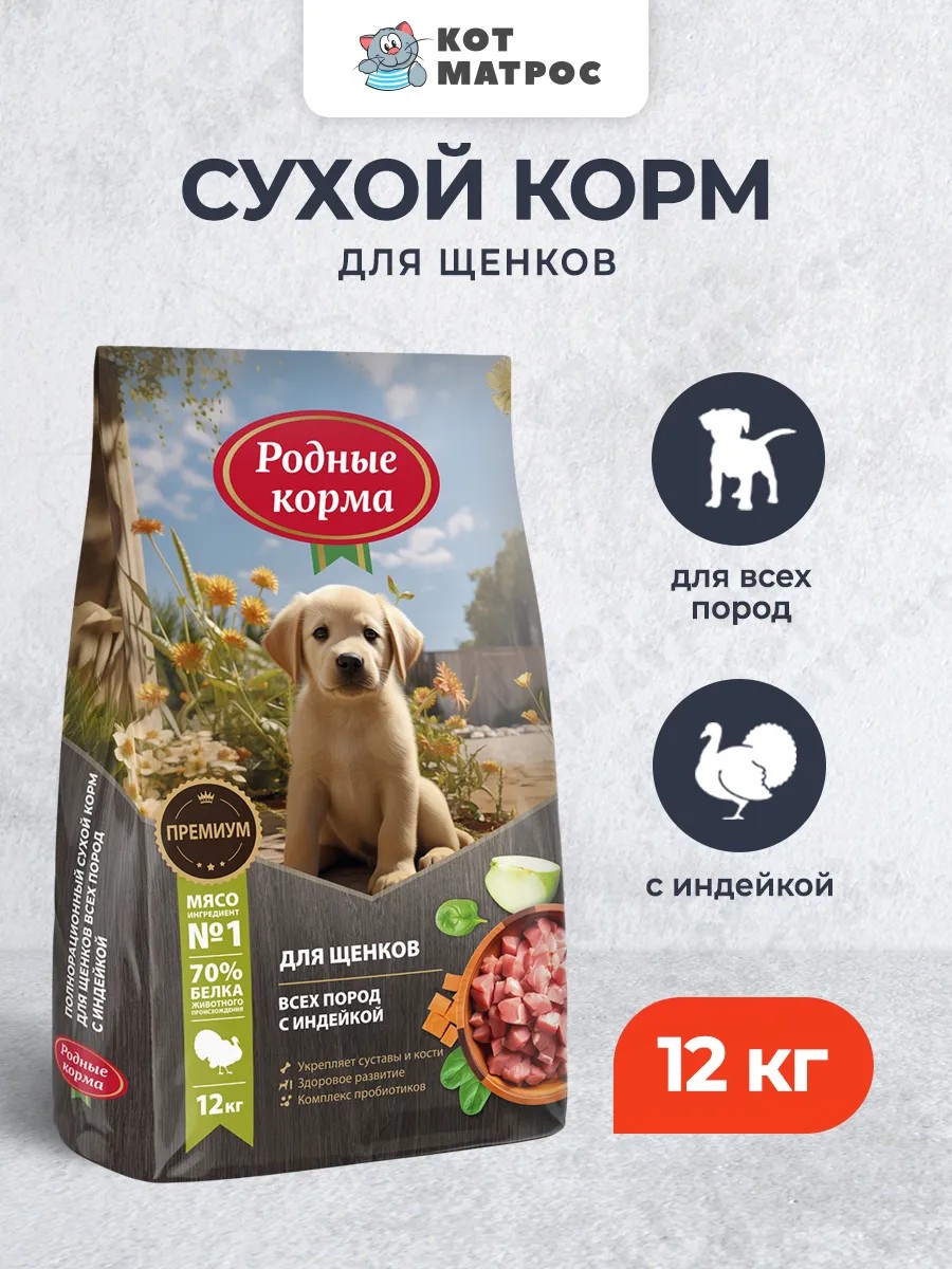 Родные корма Сухой корм для щенков всех пород с индейкой - 12 кг