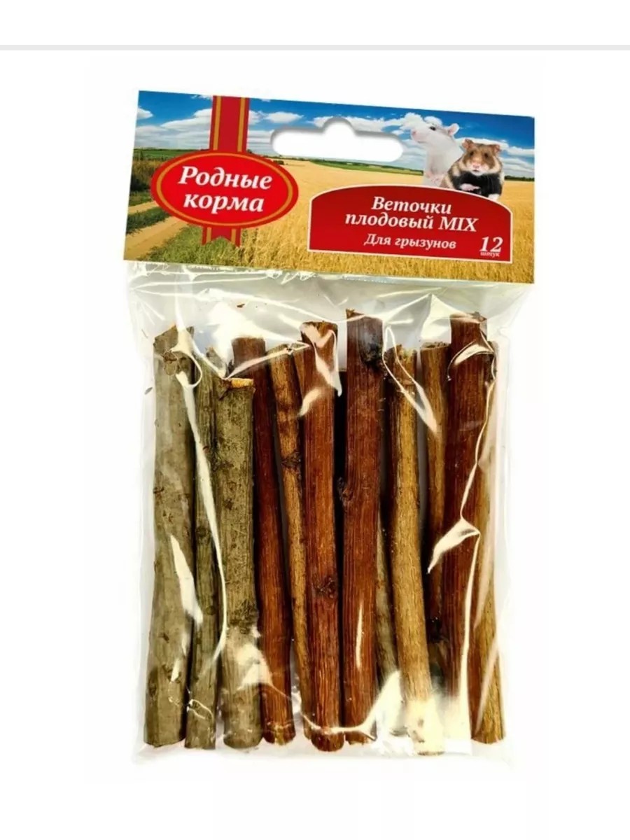 Родные корма Веточки плодовый MIX для грызунов, 10 см, 35 г