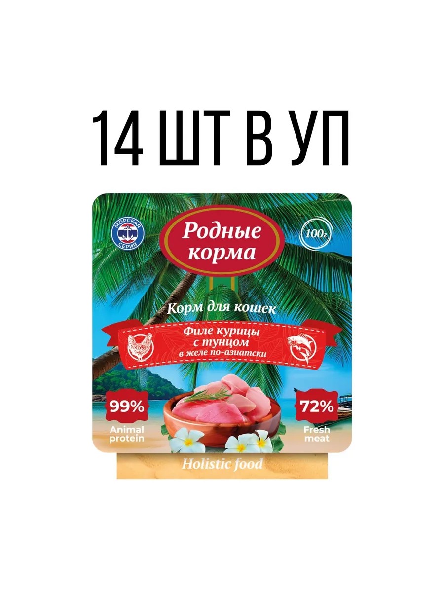 Родные корма Влажный корм для кошек филе курицы с тунцом 100 г 14 шт