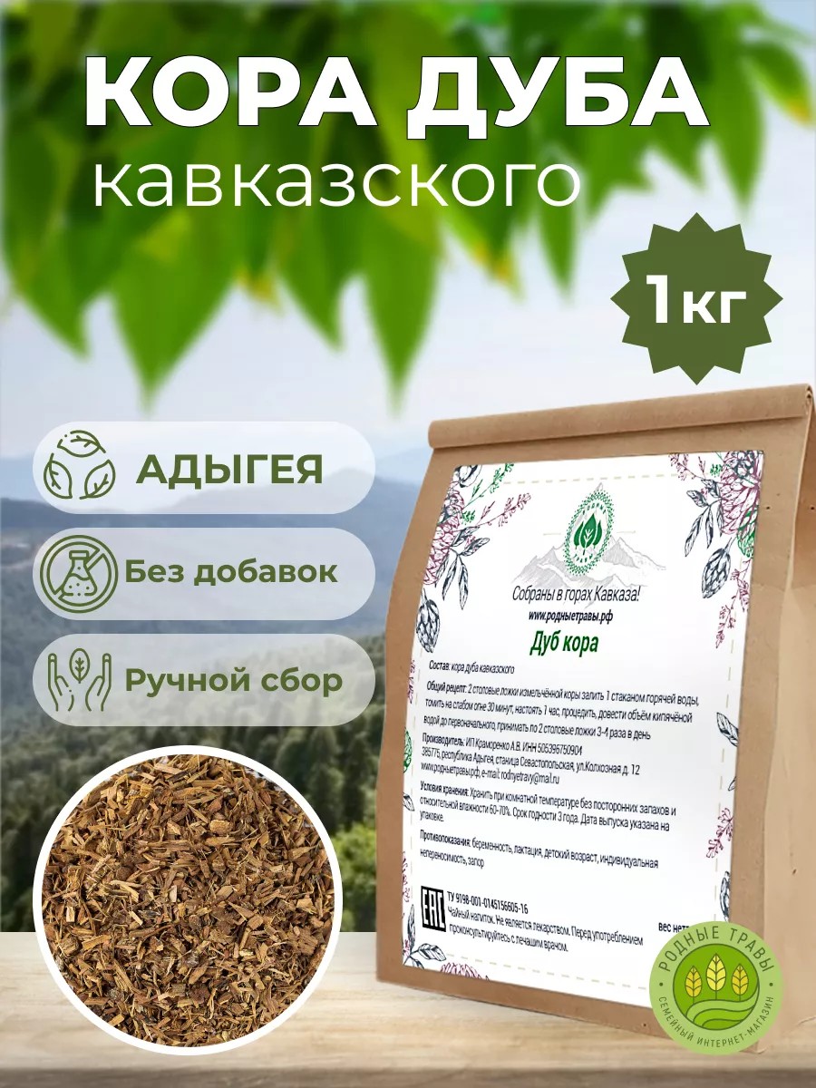 Родные травы Кора дуба измельченная кавказского дубовая Адыгея