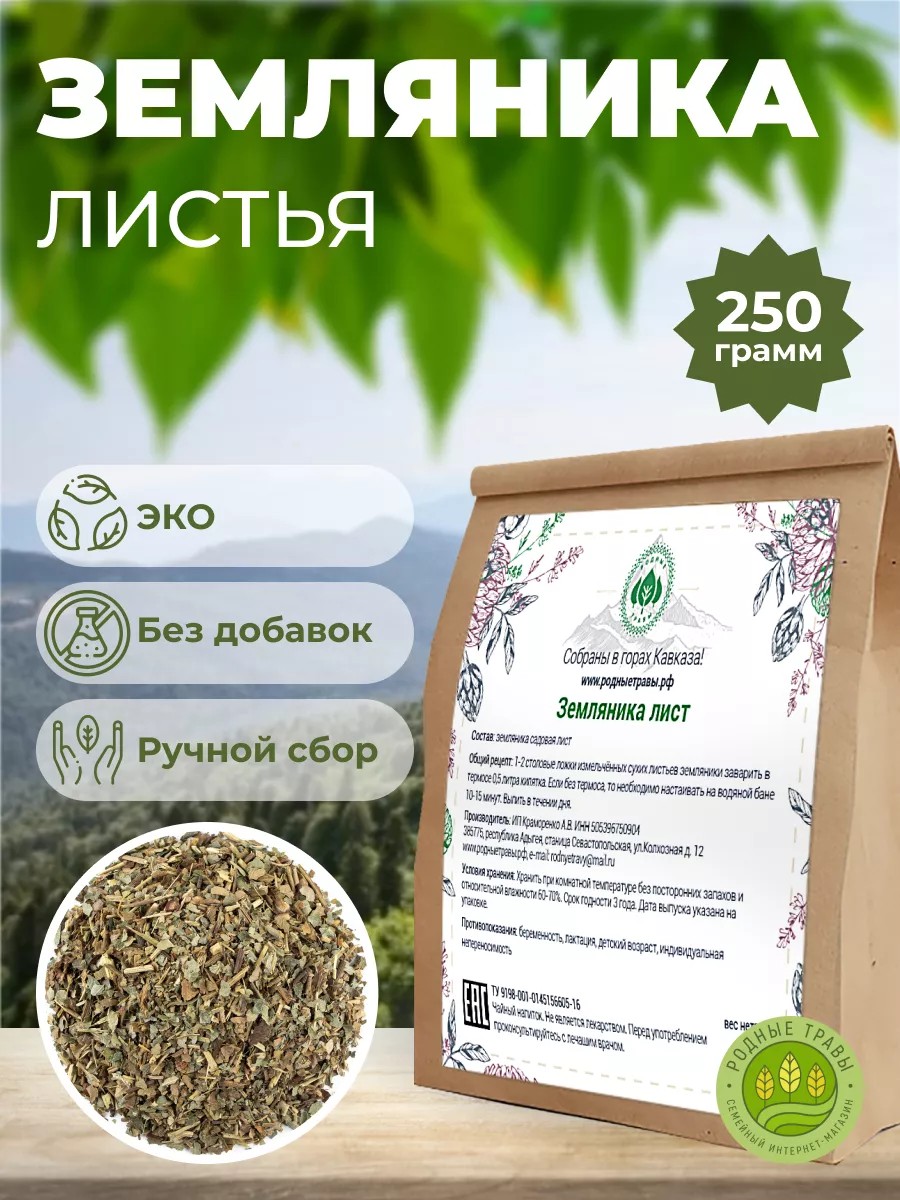 | Комплектация | Листья земляники сушеные, фито чай 1уп. |
