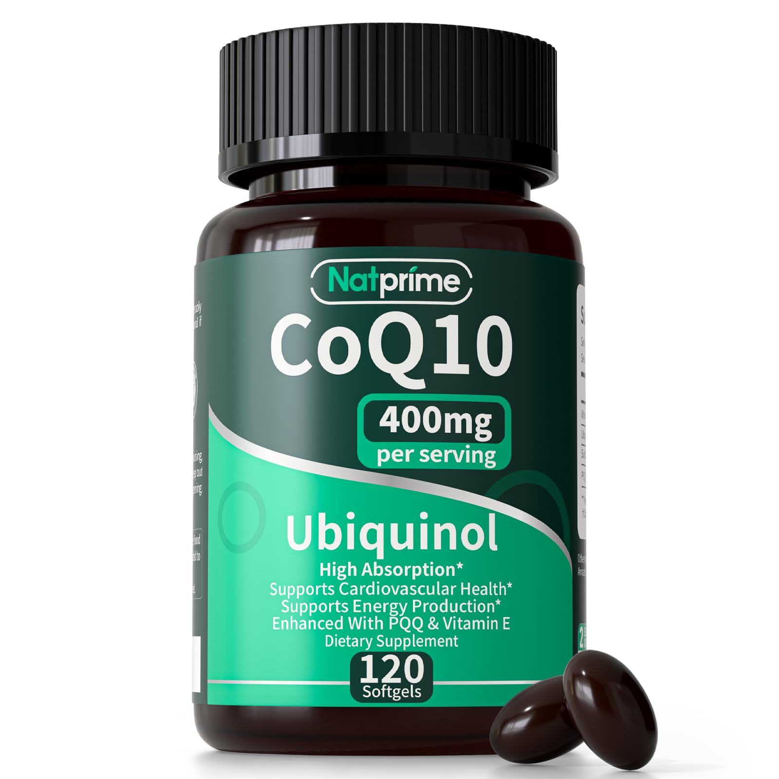 Natprime CoQ10 400mg Softgels - Ubiquinol High Absorption Coenzyme Q10 Supplement - Antioxidants, Vascular, Heart Health, Energy & Vitamin Supplements- 2 Month Supply - 120 Count