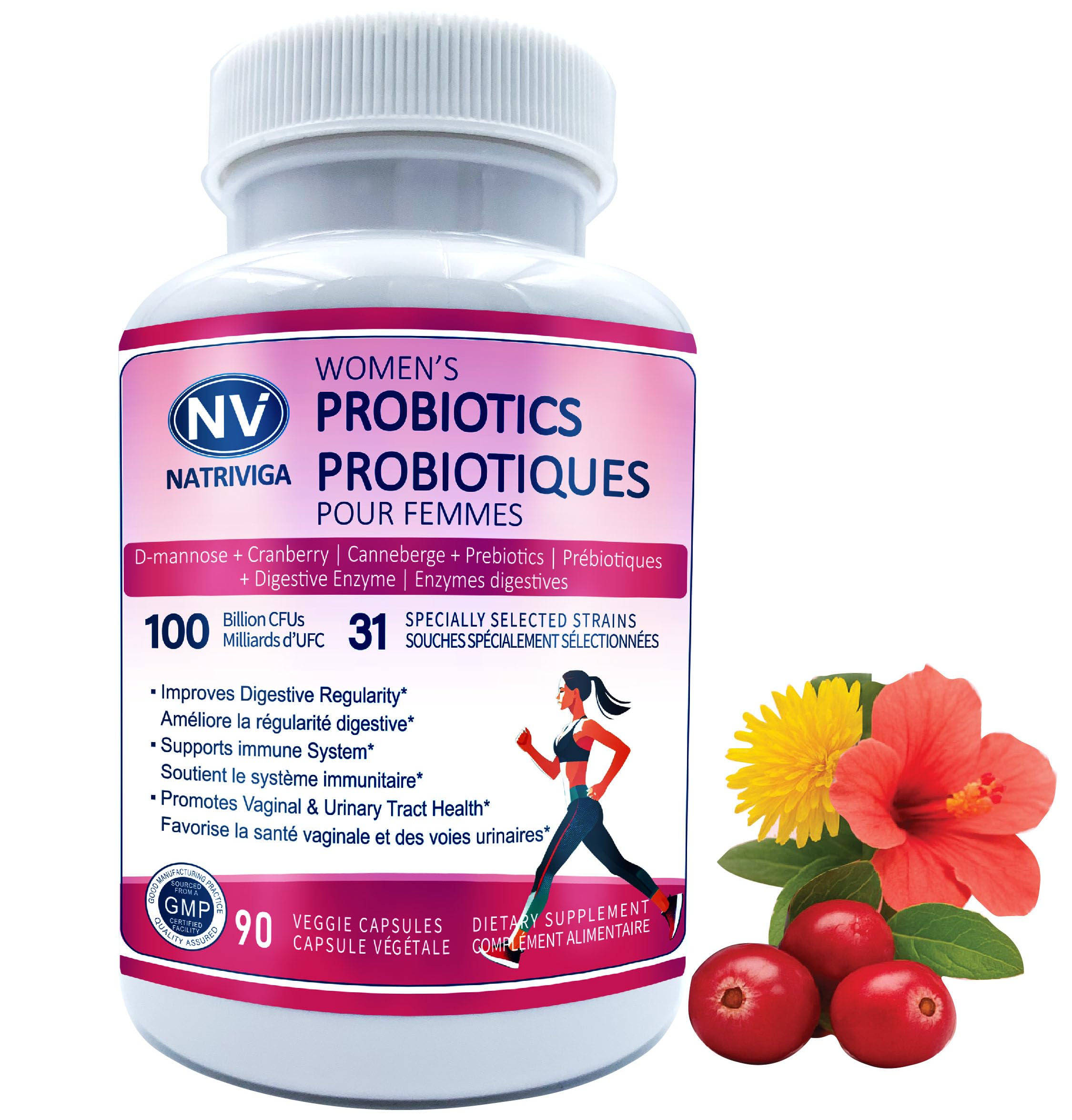 NATRIVIGA Women s Probiotic 100 Billion CFU 31 Strains with Prebiotics Digestive Enzymes Cranberry & D-Mannose Supports Gut Vaginal & Urinary Health 90 Veggie Capsules