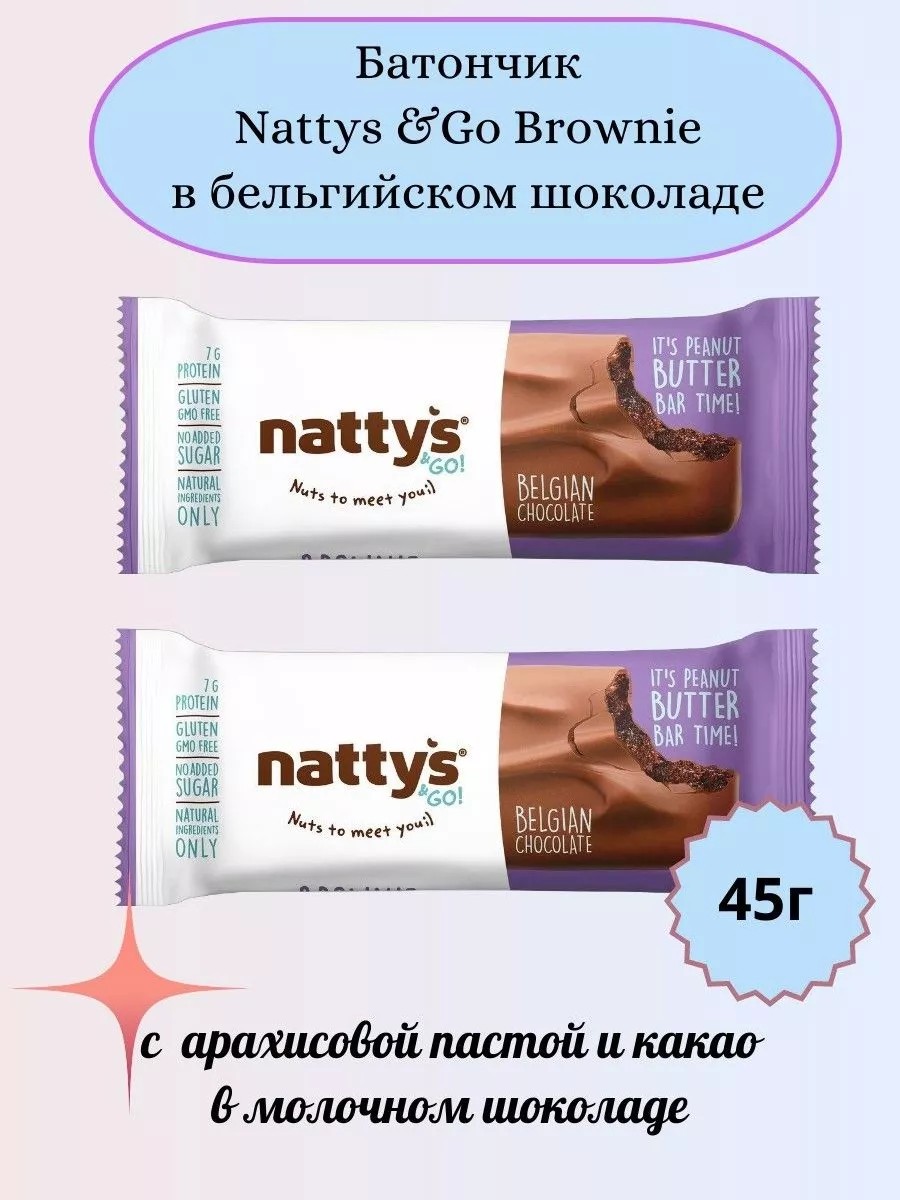 Шоколадный батончик Nattys & Go Brownie — это батончик с шоколадной арахисовой пастой внутри, покрытый слоем настоящего бельгийского молочного шоколада, без добавления сахара, очень вкусный, полезный и абсолютно натуральный перекус, который доставит много удовольствия и зарядит энергией! Теперь та самая арахисовая паста Nattys всегда с собой, в удобной форме батончика to go — это вкусное и легкое лакомство, идеально для твоего полезного перекуса, без вреда для фигуры и здоровья, без сахара, создан из премиальных ингредиентов высшего качества, с честным и чистым составом.