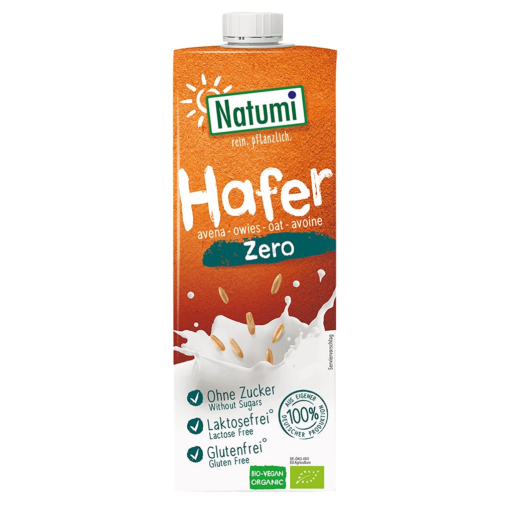Oat drink made of fermented oats, gluten -free, sugar -free, uht.Natumi's goal is to offer customers many high -quality products and satisfy the needs of all customers. Ingredients / ingredients Water, gluten -free fermented oats* (5.5%), sunflower oil*, thickener: Johannis bread core flour;Sea-salt.*from controlled ecological cultivation, de-Öko-001 Address manufacturer/importer Natumi GmbH, Gierlichstraße 17, 53840 Troisdorf, de We have managed to create more through a special procedure to create a sugar -free oat drink.The drink is not only free of sugar, but also gluten -free and is suitable for enjoyment for the whole family.The oat zero tastes in every smoothie or as a mueslibasis: wonderful oat taste, free of artificial additives.Make life easy - without sugar!.Purely vegetable.Gluten free.Lactose -free.Sugar-free.Organic. Haferdrink aus fermentierten Hafer, glutenfrei, zuckerfrei, UHT. Ziel von Natumi ist es, den Kunden viele qualitativ hochwertige Produkte anzubieten und die Bedürfnisse aller Kunden zu befriedigen. INHALTSSTOFFE / ZUTATEN Wasser, glutenfreiter fermentierter Hafer* (5,5%), Sonnenblumenöl*, Verdickungsmittel: Johannisbrotkernmehl; Meersalz. *aus kontrolliert ökologischem Anbau, DE-ÖKO-001 ANSCHRIFT HERSTELLER/IMPORTEUR Natumi GmbH, Gierlichstraße 17, 53840 Troisdorf, DE MehrDurch ein spezielles Verfahren ist es uns gelungen, einen zuckerfreien Hafer Drink zu kreieren. Der Drink ist nicht nur frei von Zucker, sondern ebenso glutenfrei und eignet sich zum Genuss für die ganze Familie. Der Hafer Zero schmeckt in jedem Smoothie oder als Müslibasis: Herrlicher Hafergeschmack, frei von künstlichen Zusätzen. Machen Sie sich das Leben leicht - ganz ohne Zucker!. Rein pflanzlich. Glutenfrei. Laktosefrei. Ohne Zucker. Bio.Natumi Bio Haferdrink Zero, 12er Karton (12 x 1l), Bio Qualität, Haferdrink, Zuckerfrei