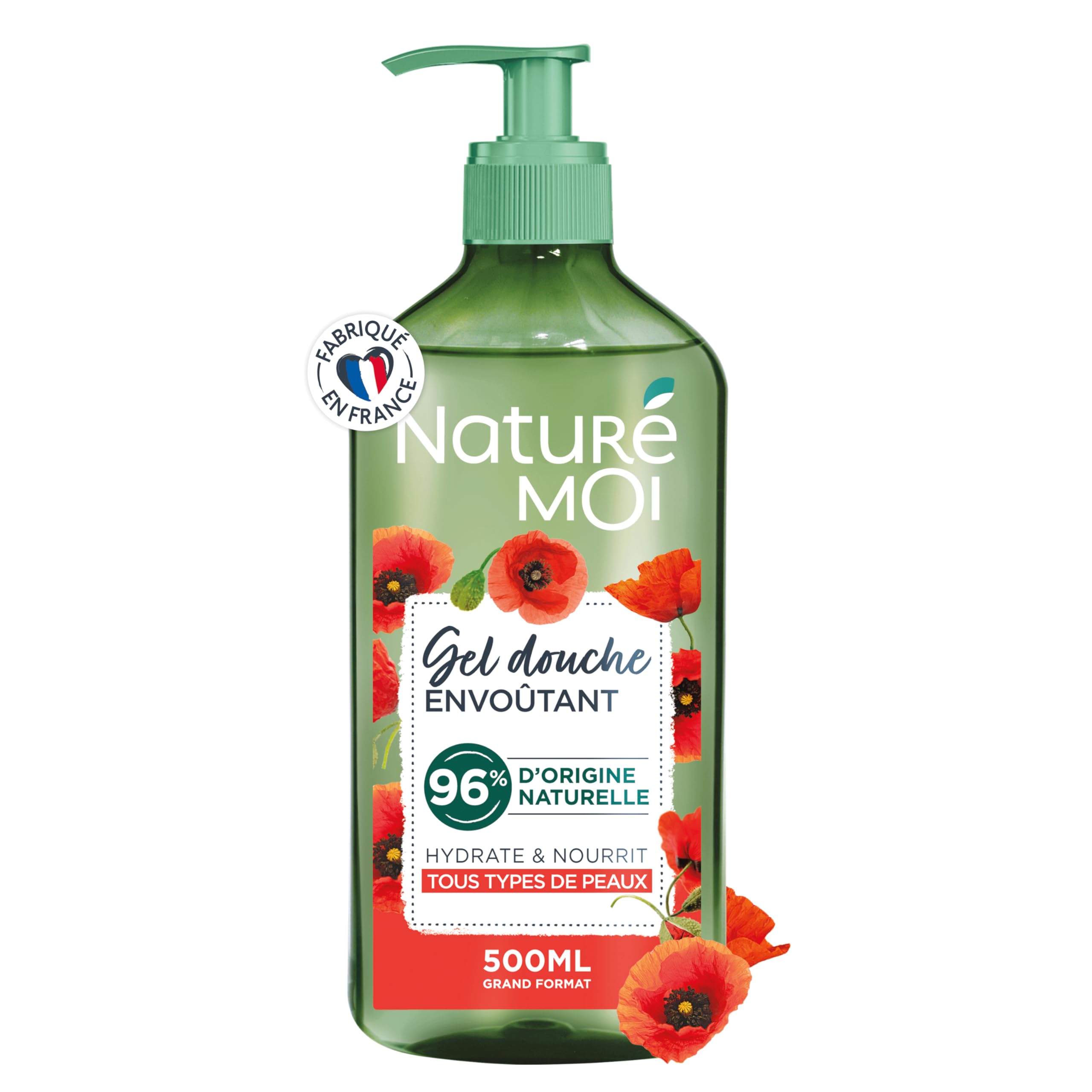 Discover the Enchanting Naturé Moi shower gel, moisturizing and nourishing, suitable for all skin types. This shower gel, with organic poppy extract from the Limousin region, hydrates and nourishes your skin. It gently cleanses and protects against dryness. Its texture creates a creamy lather and a delicate, refined floral fragrance for an enchanting shower every day. Made in France. Available in a 500ml pump bottle. INGREDIENTS AQUA (WATER) , COCAMIDOPROPYL BETAINE , GLYCERIN , LAURYL GLUCOSIDE , SODIUM COCOYL ALANINATE , PARFUM (FRAGRANCE), CITRIC ACID , SODIUM BENZOATE, SODIUM GLUCONATE , PAPAVER RHOEAS FLOWER EXTRACT . Of natural origin, the remaining 4 is used for the product's preservation and sensory qualities. From Organic Farming. INSTRUCTIONS FOR USE Apply to wet skin, lather, then rinse. SAFETY WARNING Avoid contact with eyes. In case of contact, rinse thoroughly with clean water. For external use only. Do not swallow. See moreMADE IN FRANCE: Naturé Moi's Enchanting Shower Gel is made in France, in the Vendée region. Composed of 96 naturally derived ingredients, its sulfate-free formula is enriched with organic poppies from the Limousin region. It is therefore gentle on the skin and the environment. 500ml bottle. DIRECTIONS: Apply a small amount of this Enchanting Shower Gel to wet skin. Lather, then rinse and dry with a towel. The sulfate-free formula of this shower gel is gentle on the skin. 96 NATURAL INGREDIENTS: Naturé Moi's Enchanting Shower Gel is composed of 96 naturally derived ingredients and is sulfate-free. This guarantees a gentle cleanse. The remaining 4 ensures the product's preservation and sensory appeal. MOISTURIZING AND NOURISHING: Enriched with organic poppies from the Limousin region, this Enchanting Naturé Moi shower gel nourishes and hydrates your skin. It is protected, supple, and even softer. Its formula is suitable for all skin types. ENCHANTING SHOWER GEL: The Enchanting Naturé Moi shower gel is suitable for all skin types. Made with organic poppies from the Limousin region, the formula of this shower gel, 96 of natural origin, nourishes and hydrates your skin. Its texture releases a creamy lather and a delicate, captivating floral fragrance.Naturé Moi - Gel Douche Envoûtant - Hydrate et Nourrit - Tous Types de Peaux - Coquelicots Bio du Limousin - 96 d'Origine Naturelle - 500 ml - Fabriqué en FranceDESCRIPTION DU PRODUIT DESCRIPTION DU PRODUIT Découvrez le gel douche Envoûtant Naturé Moi, hydratant et nourrissant et adapté pour tous les types de peaux. Ce gel douche à l'extrait de Coquelicot bio du Limousin hydrate et nourrit votre peau. Il la nettoie en douceur et la protège du dessèchement. Sa texture libère une mousse onctueuse et un parfum floral aux notes délicates et raffinées, pour une douche envoûtante au quotidien. Fabriqué en France. Disponible en flacon pompe 500 ml. INGRÉDIENTS AQUA (WATER) , COCAMIDOPROPYL BETAINE , GLYCERIN , LAURYL GLUCOSIDE , SODIUM COCOYL ALANINATE , PARFUM (FRAGRANCE), CITRIC ACID , SODIUM BENZOATE, SODIUM GLUCONATE , PAPAVER RHOEAS FLOWER EXTRACT ., D'origine naturelle, les 4 restant servent à la bonne conservation et sensorialité du produit. Issu de l'Agriculture Biologique. MODE D'EMPLOI Appliquer sur peau humide, faire mousser puis rincer. AVERTISSEMENT DE SÉCURITÉ Éviter le contact avec les yeux. En cas de contact, rincer abondamment à l'eau claire. Usage externe uniquement. Ne pas avaler. Voir plusFABRICATION FRANÇAISE : Le gel douche Envoûtant Naturé Moi est fabriqué en France, en Vendée. Composée à 96 d'ingrédients d'origine naturelle, sa formule sans sulfate est enrichie en Coquelicots bio du Limousin. Elle est ainsi douce pour la peau et pour l'environnement. Flacon de 500 ml. UTILISATION : Appliquez une noisette de ce gel douche Envoûtant sur peau mouillée. Faites mousser puis rincez avant de vous sécher à l'aide d'une serviette. La formule sans sulfate de ce gel douche est douce pour la peau. 96 D'ORIGINE NATURELLE : Le gel douche Envoûtant Naturé Moi est composé à 96 d'ingrédients d'origine naturelle, sans sulfate. Il vous garantit ainsi un nettoyage tout en douceur. Les 4 restant servent à la bonne conservation et sensorialité du produit. HYDRATANT ET NOURRISSANT : Enrichi en Coquelicots bio du Limousin, ce gel douche Envoûtant Naturé Moi nourrit et hydrate votre peau. Elle est protégée, souple et encore plus douce. Sa formule convient pour tous les types de peaux. GEL DOUCHE ENVOÛTANT : Le gel douche Envoûtant Naturé Moi est adapté pour tous les types de peaux. À base de Coquelicots bio du Limousin, la formule de ce gel douche à 96 d'origine naturelle nourrit et hydrate votre peau. Sa texture libère une mousse onctueuse et un parfum floral aux notes délicates et envoûtantes.