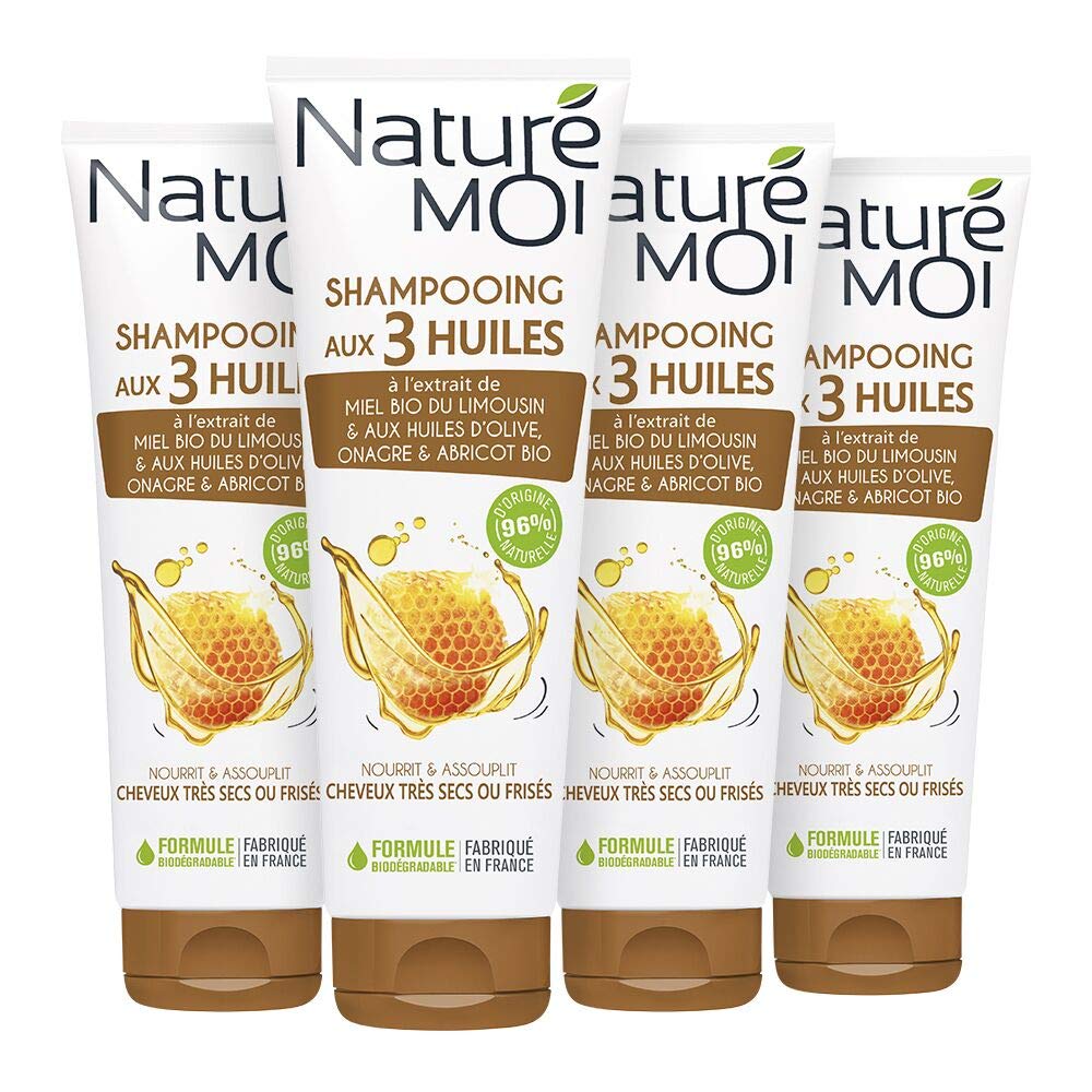 The unique combination of 3 organic oils (olive, evening primrose and apricot) and organic Limousin honey extract nourishes and repairs very dry or frizzy hair. This shampoo cleanses hair without weighing it down, while protecting it from external aggressions. Hair is less brittle and regains softness, suppleness and shine after each shampoo. INGREDIENTS Aqua (Water), Sodium Lauroyl Methyl Isethionate, Glycerin, Coco-Betaine, Cocamidopropyl Betaine, Parfum (Fragrance), Acrylates Copolymer, Sodium Chloride, Sodium Benzoate, Glycol Distearate, Guar Hydroxypropyltrimonium Chloride, Phospholipids, Sodium Gluconate, Salicylic Acid, Glycine Soja Oil (Soybean Oil), Prunus Armeniaca (Arpicot) Kernel Oil, Oenothera Biennis Oil, Olea Europaea (Olive) Fruit Oil, Glycolipids, Ricinus Communis (Castor) Seed Oil, CI 77492 (Iron Oxides), Sodium Hydroxide, Glycine Soja (Soybean) Sterols, Mel Extract, Potassium Sorbate, Alpha-Isomethyl Ionone, Benzyl Salicylate, Linalool.Delivery: Naturé Moi 3-oil shampoo 250ml With a warm and delicious fragrance Up to 99 biodegradable for animal and planetary ethics. Naturé Moi products are made in France, with 96 natural ingredients - take care of the planet, take care of your hair. Shower differently! With a delicious fragrance, this shampoo nourishes and softens very dry or frizzy hair, giving it shine. A product with environmentally friendly ingredients: the 3-oil shampoo has a minimal impact on aquatic flora and fauna It is 98 biodegradable!. A unique combination: this shampoo with organic Limousin honey extract and organic olive, evening primrose and apricot oils nourishes and repairs hair - for a moment of softness. L'association unique de 3 huiles BIO (olive, onagre et abricot) et de l'extrait de miel BIO du Limousin nourrit et répare les cheveux très secs ou frisés. Ce shampooing nettoie les cheveux sans les alourdir, tout en les protégeant des agressions extérieures. Les cheveux sont moins cassants et ils retrouvent douceur, souplesse et brillance après chaque shampooing. INGRÉDIENTS Aqua (Water), Sodium Lauroyl Methyl Isethionate, Glycerin, Coco-Betaine, Cocamidopropyl Betaine, Parfum (Fragrance), Acrylates Copolymer, Sodium Chloride, Sodium Benzoate, Glycol Distearate, Guar Hydroxypropyltrimonium Chloride, Phospholipids, Sodium Gluconate, Salicylic Acid, Glycine Soja Oil (Soybean Oil), Prunus Armeniaca (Arpicot) Kernel Oil, Oenothera Biennis Oil, Olea Europaea (Olive) Fruit Oil, Glycolipids, Ricinus Communis (Castor) Seed Oil, CI 77492 (Iron Oxides), Sodium Hydroxide, Glycine Soja (Soybean) Sterols, Mel Extract, Potassium Sorbate, Alpha-Isomethyl Ionone, Benzyl Salicylate, Linalool.Livraison : shampooing aux 3 huiles de 250ml Naturé Moi Avec parfum aux accords chauds et gourmands Jusqu'à 99 biodégradable pour une éthique animale et planétaire. Les produits Naturé Moi sont fabriqués en France, avec des ingrédients d'origine 96 naturelle - prenez soin de la planète, prenez soin de vos cheveux. Douchez-vous différemment ! Avec un parfum aux accords gourmands, ce shampooing nourrit et assouplit les cheveux très secs ou frisés en leur donnant de la brillance. Un produit aux ingrédients doux pour l'environnement : le shampooing aux 3 huiles a un impact minime sur la faune et la flore aquatique Il est à 98 biodégradable !. Une association unique : ce shampooing à l'extrait de miel bio du Limousin et aux huiles d'olive, d'onagre et d'abricot bio nourrit et répare les cheveux - pour un moment de douceur.