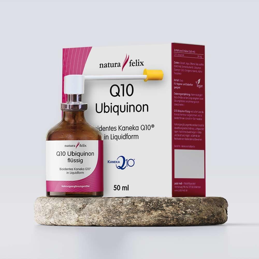 Ingredient per 8 sprays (1.04 ml) Quantity: NRV Coenzyme Q10 (Ubiquinone) Kaneka grade 34 mg --- Reference intake according to European Regulation 1169 2011. Directions for use: Up to 8 sprays throughout the day, preferably under the tongue. Tips: The mucous membrane under the tongue is thin and has good blood circulation. This allows the active ingredient to penetrate directly into the bloodstream. Free from: peanuts, gluten, yeast, preservatives, artificial flavors, artificial fragrances, artificial colors, artificial flavors, lupin, corn, salt, tree nuts, sulfur dioxide, celery, mustard, sesame, starch, sulfate, wheat, sugar. Ingredients: Coenzyme Q10, glycerin, water, vitamin E, lecithin, orange peel oil, sunflower oil, ethanol. Natura Felix Q10 Liquid uses advanced nanoemulsion technology to significantly improve the absorption of ubiquinone, allowing up to 80 of the active ingredient to effectively penetrate cells. This technique enables rapid activation and offers higher bioavailability than traditional forms. The product, based on high-purity ubiquinone produced through a patented fermentation process, increases cellular energy, protects against oxidative stress, and supports overall health. It is particularly suitable for people aged 40 and over to reduce age-related physical changes and promote vitality. While many liposomal Q10 products have increased bioavailability, their absorption of the active ingredient into cells is not optimal. In contrast, our Q10 is surrounded by microscopic droplets (commonly called nanoemulsions) that are no larger than 100 nm. A human hair is approximately 80,000 nanometers thick. INGREDIENTS Coenzyme Q10 (ubiquinone)Liposomal nanoemulsion. May help reduce age-related changes in the body. May help improve skin appearance. Protects cells from oxidative stress. Optimizes cellular energy.Natura felix Q10 Ubiquinone Liquide Bioidentique Kaneka Q10 50ml Complément alimentaireDESCRIPTION DU PRODUIT DESCRIPTION DU PRODUIT Ingrédient pour 8 coups (1,04 ml) Quantité : NRV Coenzyme Q10 (Ubiquinone) qualité Kaneka 34 mg --- Quantité de référence selon le règlement européen 1169 2011. Conseils d'utilisation : jusqu'à 8 coups répartis tout au long de la journée, de préférence pulvériser sous la langue. Conseils : la muqueuse sous la langue est fine et bien circulée. Cela permet au principe actif de pénétrer directement dans la circulation sanguine. Sans : arachide, gluten, levure, conservateur, arômes artificiels, parfums artificiels, colorants artificiels, arômes artificiels, lupin, maïs, sel, fruits à coque, dioxyde de soufre, céleri, moutarde, sésame, amidon, sulfate, blé, sucre. Ingrédients : coenzyme Q10, glycérine, eau, vitamine E, lécithine, huile d'écorce d'orange, huile de tournesol, éthanol. Natura felix Q10 liquide utilise une technologie avancée de nanoémulsion pour améliorer considérablement l'absorption de l'ubiquinone, permettant jusqu'à 80 de la substance active de pénétrer efficacement dans les cellules. Cette technique permet une activation rapide et offre une biodisponibilité plus élevée que les formes traditionnelles. Le produit, à base d'ubiquinone de haute pureté issu d'un processus de fermentation breveté, augmente l'énergie cellulaire, protège contre le stress oxydatif et soutient la santé globale. Il est particulièrement adapté aux personnes de 40 ans et plus pour réduire les changements physiques liés à l'âge et favoriser la vitalité. Bien que de nombreux liposomaux Q10 aient une biodisponibilité accrue, l'absorption de la substance active dans la cellule n'est pas optimale. En revanche, notre Q10 est entouré de gouttelettes microscopiques (appelées familièrement nanoémulsion) qui ne dépassent pas 100 nm. Un cheveu humain fait environ 80 000 nanomètres d'épaisseur. . INGRÉDIENTS Coenzyme Q10 (ubiquinone)Liposomal par nanoémulsion. Peut aider à réduire les changements liés à l'âge dans le corps. Peut aider à améliorer l'apparence de la peau. Protège les cellules du stress oxydatif. Optimise l'énergie cellulaire.