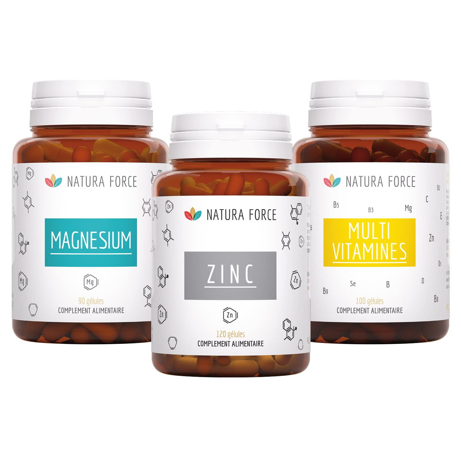 MADE IN FRANCE: Manufactured, packaged and controlled in France, in a laboratory that complies with GMP (Good Manufacturing Practices) standards. MULTI-VITAMIN COMPLEX: Our multivitamin supplement, rich in essential vitamins and minerals, is a practical way to boost your nutritional intake in a complete and natural way. Taking this multivitamin supplement is a solution for stocking up on nutrients at certain times of the year, particularly during seasonal changes. MAGNESIUM: Magnesium is an essential mineral for the proper functioning of the immune system. It helps combat stress, low energy and physical fatigue. On average, 75 of the population is deficient in magnesium, hence the importance of supplementing correctly to allow the body to function properly. ZINC: Zinc is an essential trace element in the body. It even contributes to the maintenance of normal skin, bones, cognitive functions, and hair. Help strengthen your immunity and your body's defenses with our natural food supplements: royal jelly, magnesium, and multivitamins. These three supplements are perfect for helping the body naturally protect itself against the effects of winter and stay in better shape, thanks in particular to their high levels of magnesium and vitamin B C.FABRICATION FRANÇAISE : Fabriqués, conditionnés et contrôlés en France, dans un laboratoire aux normes BPF (Bonnes Pratiques de Fabrication Good Manufacturing Practices). COMPLEXE MULTI-VITAMINES : Notre complément multivitamines, riche en vitamines et minéraux essentiels est un moyen pratique de booster vos apports nutritionnels de façon complète et naturelle. La prise de ce complément multivitamines est une solution pour faire le plein de nutriments à certaines périodes de l'année, notamment aux changements de saison. MAGNESIUM : Le magnésium est un minéral essentiel au bon fonctionnement du système immunitaire. Il aide à combattre le stress, les coups de mou et la fatigue physique. En moyenne, 75 de la population est carencée en magnésium, d'où l'intérêt de se supplémenter correctement afin de permettre à l'organisme de fonctionner correctement. ZINC : Le zinc est un oligo-élément essentiel de l'organisme. Il contribue même au maintien de la peau, de l'ossature, des fonctions cognitives et de cheveux normaux. Aidez à renforcer votre immunité et les défenses de votre organisme avec nos compléments alimentaires naturels : gelée royale, magnésium et multivitamines. Ces trois compléments sont parfaits pour aider le corps à se prémunir naturellement contre les traces de l'hiver et à être en meilleure forme grâce notamment à leurs apports élevés en magnésium et en vitamine B C.