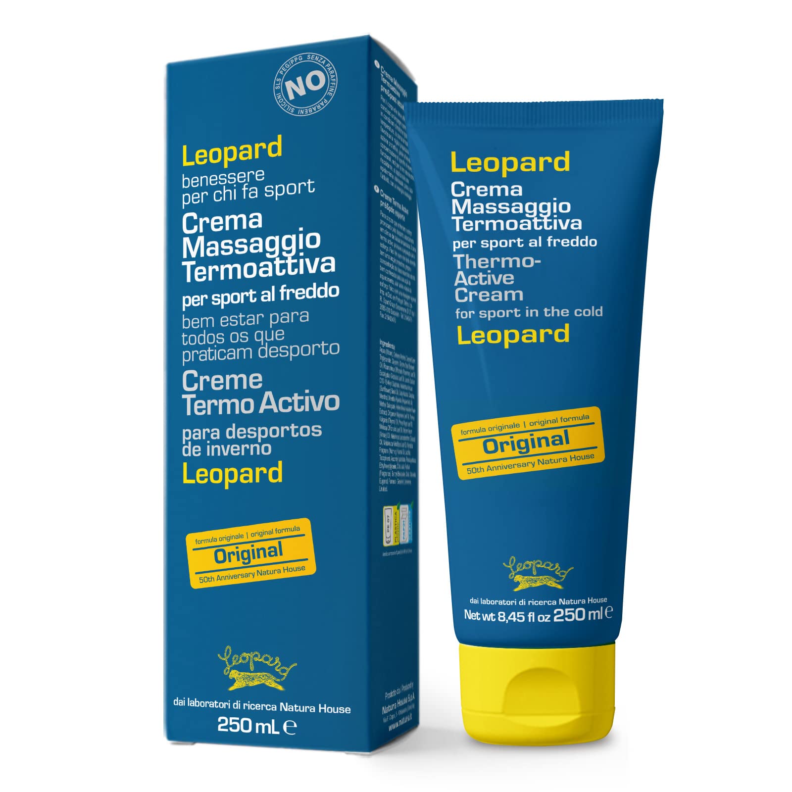 This thermoactive massage cream, formulated for pre- and post-activity use, is ideal for bodies preparing for or after athletic activity, especially in harsh weather and low temperatures. It promotes optimal preparation. Its protective action is due to a high concentration of functional essential oils, known for their natural warming properties. Leopard Thermoactive Cream stands out from similar products because of its balanced combination of a "warming" thermoactive action for comfort and relaxation, and a "cooling," invigorating, and regenerating action provided by precious, natural essential oils. These include essential oils with a cooling and warming, decongestant, and stimulating effect: anchovy, eucalyptus, gyput, gypt, gyeux, peppermint, permentol, mugo, rosemary, thyme, lemon, and ceril. Other ingredients with a warming effect include canher, oregano, black mustard, and capsicum. Arnica oil, with its soothing and stimulating properties, is also included. Cucumber: with decongestant and de-bloating properties. Weighted wool: with soothing, calming, and soothing properties. Easily removable and quickly absorbed. Does not contain paraffins, parabens, silicones, SLS SLES, or PEG PPG. INGREDIENTS Ingredients (accidental): Water, Cetearyl alcohol, Caprylic capric triglycerides, Glycerin, Glycine soja (Soybean) oil, Rosmarinus officinalis (Rosemary) oil, Eucalyptus globulus (Eucalyptus) oil, Lanolin, Cetyl alcohol, Arnica montana (Arnica) oil, Cucumis sativus (Cucumber) extract, Camphor, Mentha piperita (Mint) oil, Methyl salicylate, Foeniculum vulgare (Fennel) oil, Origanum majorana (Oregano) oil, Pinus pumilio (Pine) oil. , Thymus vulgaris (Thyme) oil, Pimpinella anisum (Anise) oil, Melaleuca leucadendron (Cajeput) oil, Cupressus sempervirens (Cypress) oil, Citrus medical limonum (Lemon) oil, Capsicum frutescens extract, Tocopherolpherolpherolpherolpherol. , Lecithin, Ascorbyl palmitate, Citric acid, Alcohol, Sodium benzoate, Dehydroacetic acid, Phenoxyethanol, Limonene, Linalool, Benzyl alcohol.Leopard Sport - Crème Massage Thermoactif 15 Huiles Essentielles, 250 mlDESCRIPTION DU PRODUIT DESCRIPTION DU PRODUIT Crème massage thermoactive pré post-activité pour le corps qui doit affronter ou a conclu un engagement sportif, surtout dans des conditions climatiques rigides et basses températures, favorise la meilleure préparation. À action protectrice, grâce à la forte concentration d'huiles essentielles fonctionnelles, connues pour leur action naturelle chauffante. La crème thermoactive leopard se distingue des produits similaires à cause de l'alliance équilibrée entre l'action thermoactive « chauffante » pour apporter confort et détente. L'action « froidement, revigorante et régénérante, donné d'huiles essentielles précieuses, pres et naturelles : huiles essentielles à réaction froide et ronde, décongestionnante et stimulant : ante, kangourou eucalyptaire, gyput, gypt, gyeux, menthe perpermen, permentol, mugo, romarin, thym, citron et ceril. Huiles essentiels et autres ingrédients avec réaction de chauffage : canhère, origan, moutarde noire et capsique. L'huile d'arnica avec des propriétés apaisantes et stimulantes. Le concombre : avec des propriétés décongestionnantes et dégonflantes. Le lesté de métiers : avec des propriétés flammantes, abstraissantes et calmantes. Facilement amovible et à absorber rapidement. Ne contient pas de paraffines, parabènes, silicones, sls sles, peg ppg. INGRÉDIENTS Ingrédients (accident) eau (Water), Cetearyl alcohol, Caprylic capric tryglyerides, Glycérin, Glycine soja (Soya bean) oil, Rosmarinus officinalis (Rosemary) oil, Eucalyptus globulus (Eucalyptus) oil, Lanolin, Cetyl alcohol, Arnica montana (Arnica) oil, Cucumis sativus (Cucumber) extract, Camphor, Mentha piperita (Mint) oil, Methyl salicylate, Foeniculum vulgare (Fennel) oil, Origanum majorana (Origan) oil, Pinus pumilio Pines) oil. , Thymus vulgaris (Thyme) oil, Pimpinella anisum (Anise) oil, Melaleuca leucadendron (Cajeput) oil, Cupressus sempervirens (Cypress) oil, Citrus médical limonum (Lemon) oil, Capsicum frutescens extract, Tocopherolpherolpherolpherolpherol. , Lecithin, Ascorbyl palmitate, Citric acid, Alcohol, Sodium benzoate, Dehydroacetic acid, Phenoxyethanol, Limonene, Linalool, Benzyl alcohol.Testé dermatologiquement. Contient des huiles essentielles : anis étoilé, cajeputo, eucalyptus, genévrier menthe poivrée, mentul, pin mugu, romarin, thym, citron, finil, canhre, origan et moutarde noire capsique, concombre, arnica, glycérine végétale, huiles végétales, laine, salillée méthyle, vitamine C, vitamine e. Origine naturelle 98,5 .
