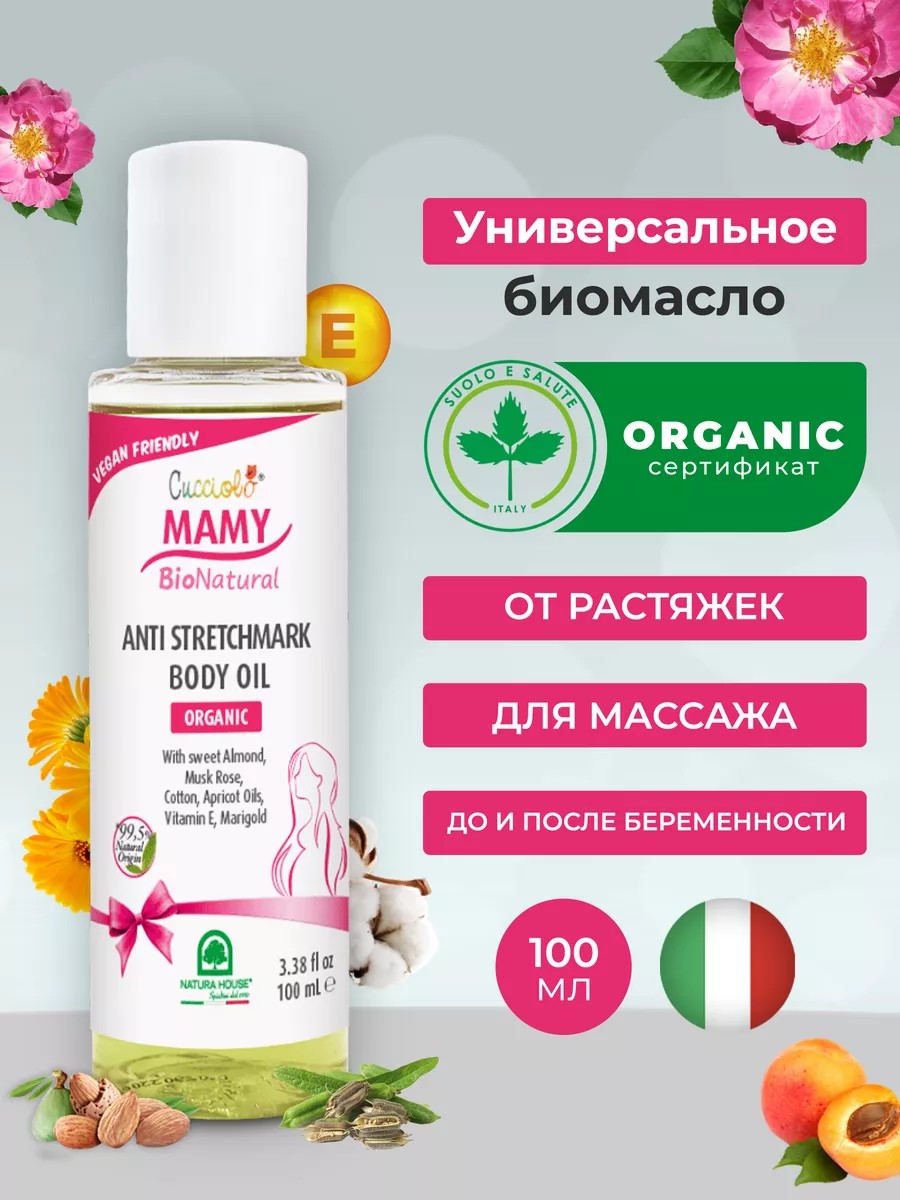 Органическое масло для массажа и против растяжек Cucciolo Mamy Bio Natural от Natura House предназначено для ухода за кожей беременных и кормящих мам. Его натуральный состав создан для борьбы с растяжками и способствует улучшению эластичности кожи, предупреждая их появление. Регулярное использование этого масла в качестве профилактического средства помогает поддерживать кожу увлажненной и плотной, что особенно важно в периоды активных изменений тела. Благодаря легкой текстуре, оно легко впитывается, не оставляя жирных следов, и может использоваться как для массажа, так и для ежедневного ухода. Органическое масло от растяжек идеально подходит для деликатного массирования, улучшая кровообращение и способствуя регенерации кожи. Естественные компоненты масла питают и защищают кожу, минимизируя риски аллергий и раздражений, что делает его безопасным для использования в любое время, даже во время беременности и грудного вскармливания. Богатое растительными маслами, обладающими питательными свойствами, оно надолго делает кожу мягкой и увлажненной. Экстракт календулы помогает избежать появления растяжек и помогает справиться с уже существующими. Его ценят за деликатность и легкость впитывания, а нежный аромат, не содержащий аллергенов, обеспечивает приятный массаж. Витамин E делает кожу гладкой и мягкой и предотвращает потерю влаги из эпидермиса, сохраняя кожу увлажненной. В составе: экстракт календулы, масла хлопка, миндаля, абрикоса, кунжута и мускусное розовое масло. Гипоаллергенно. Подходит даже для самой чувствительной кожи. Дерматологически протестировано. Сертифицировано. Приятная текстура, хорошо впитывается. Cucciolo Mamy Bio Natural - веганская био косметика, произведенная без использования компонентов животного происхождения, которая не тестируется на животных.
