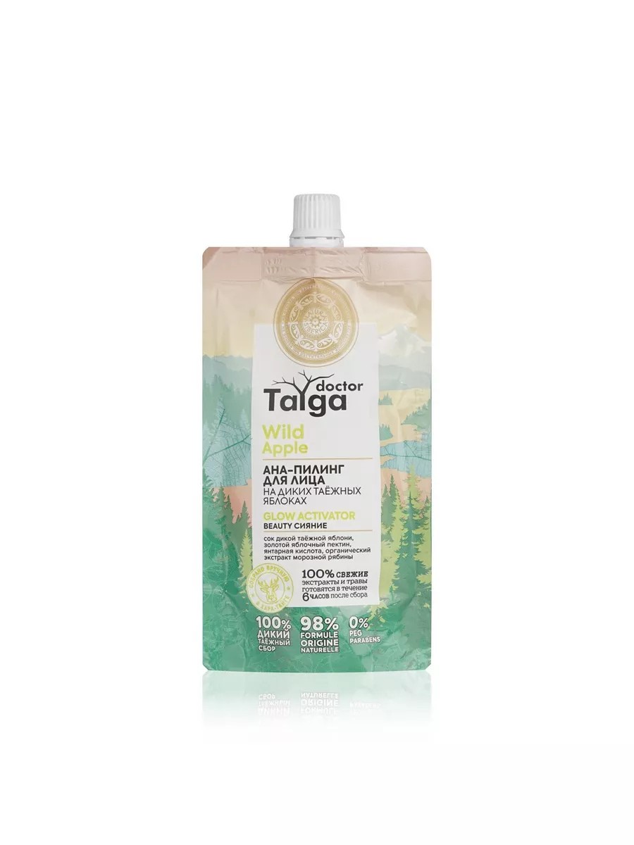 Wild taiga apple juice contains AHA acids, which effectively exfoliate and stimulate collagen production in skin cells. Apple pectin removes toxins, tones, and promotes cellular renewal.